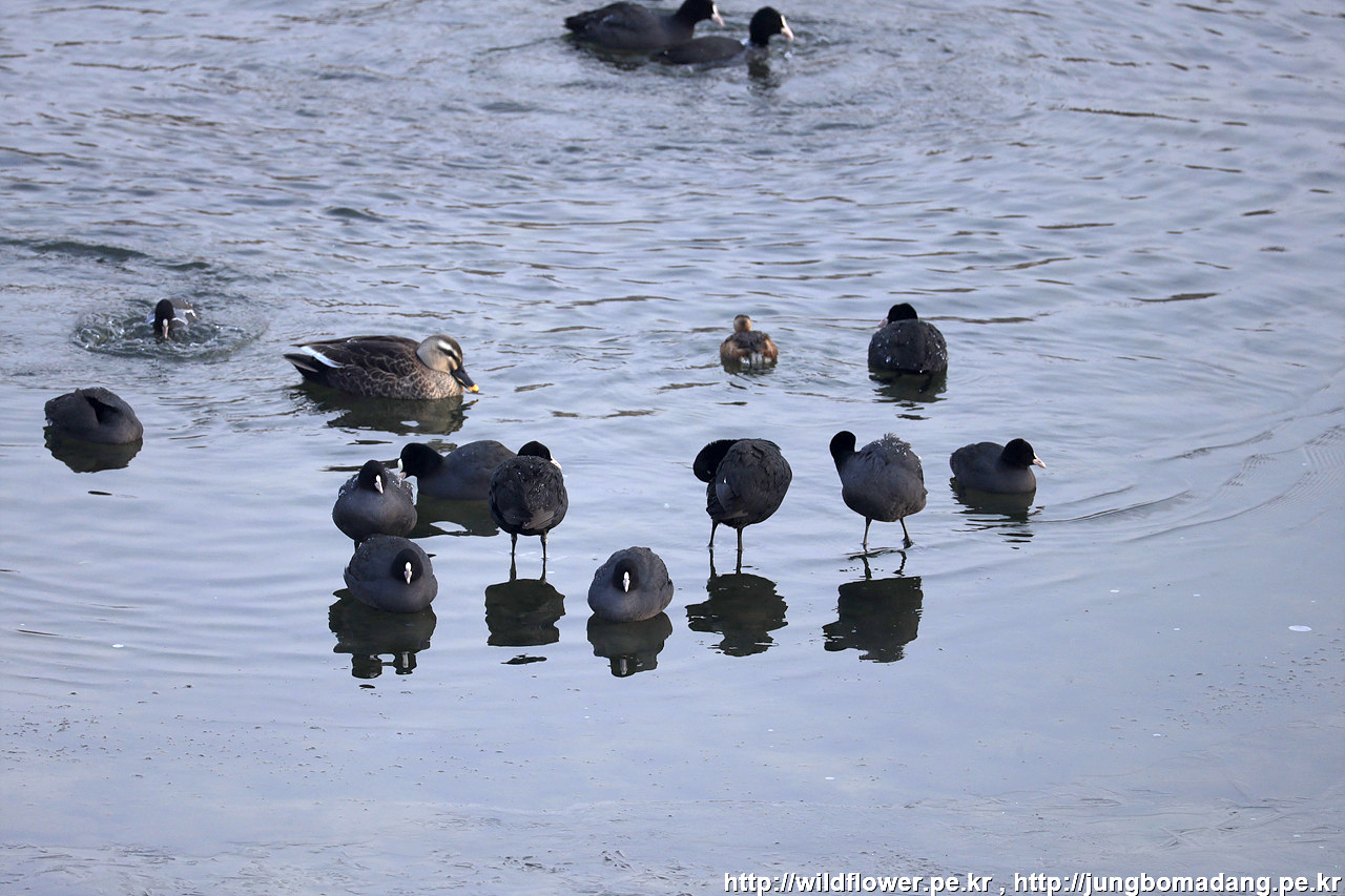 청둥오리 - 수컷(좌측, 머리 녹색)