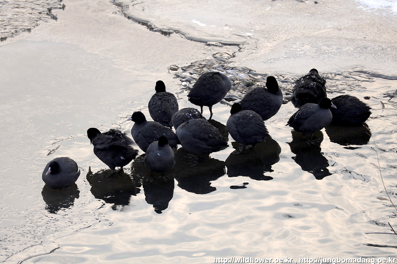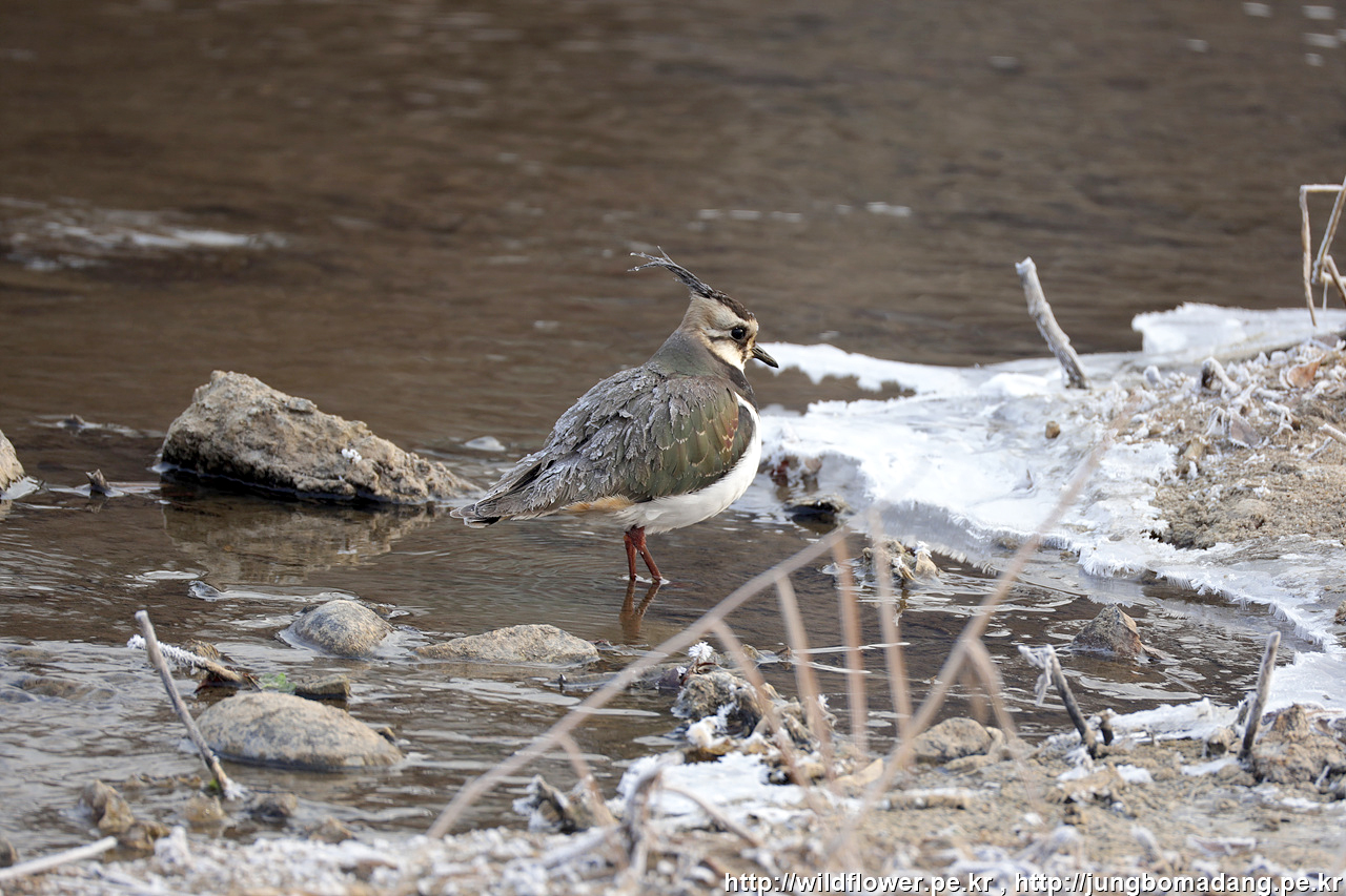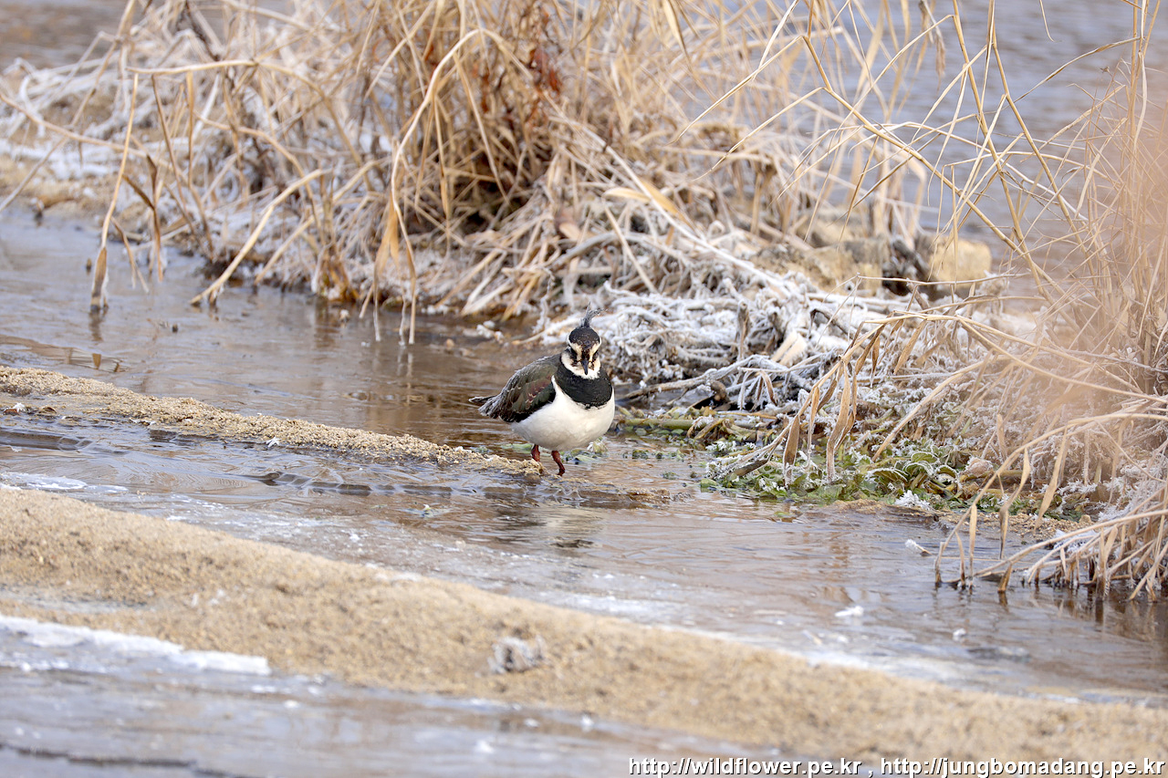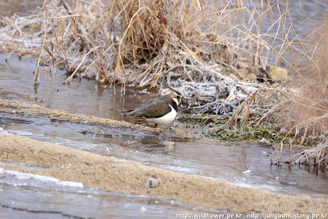 댕기물떼새 - 수컷 겨울깃. 날개나 머리깃에 서리가 맺힌 걸 보니 보기에 추워 보였습니다.