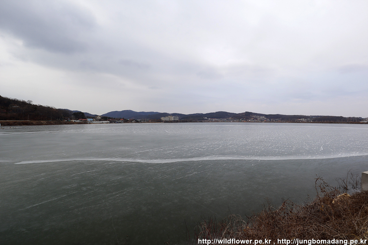 장흥제2저수지 - 꽁꽁 얼어 있네요. 저수지에 새는 보이지 않습니다.