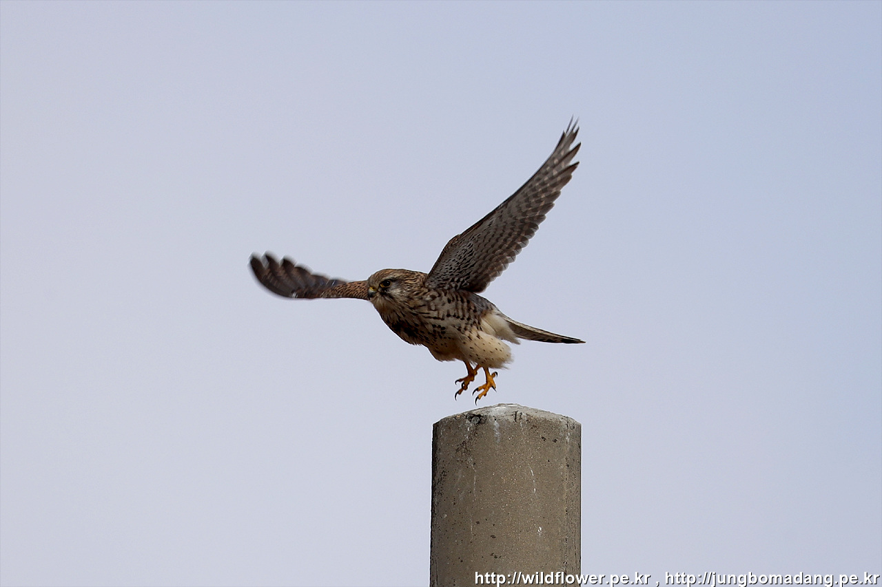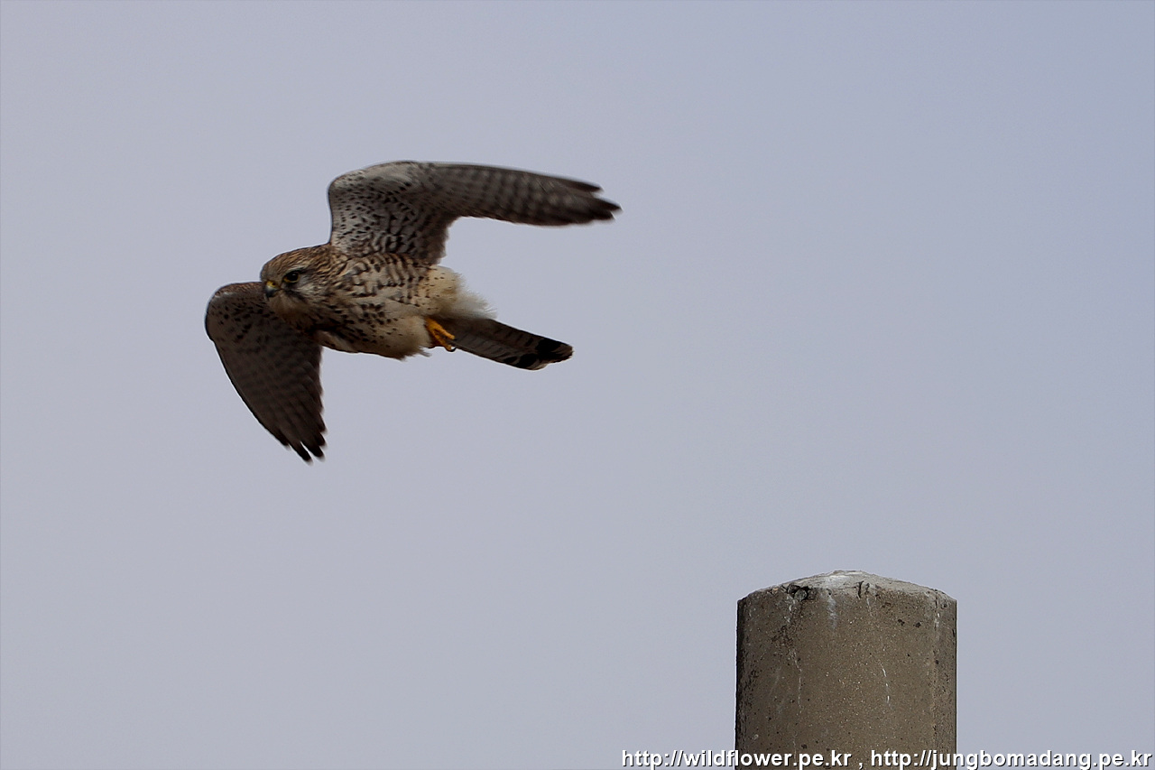 황조롱이 비상 - 암컷. 크롭 사진입니다.