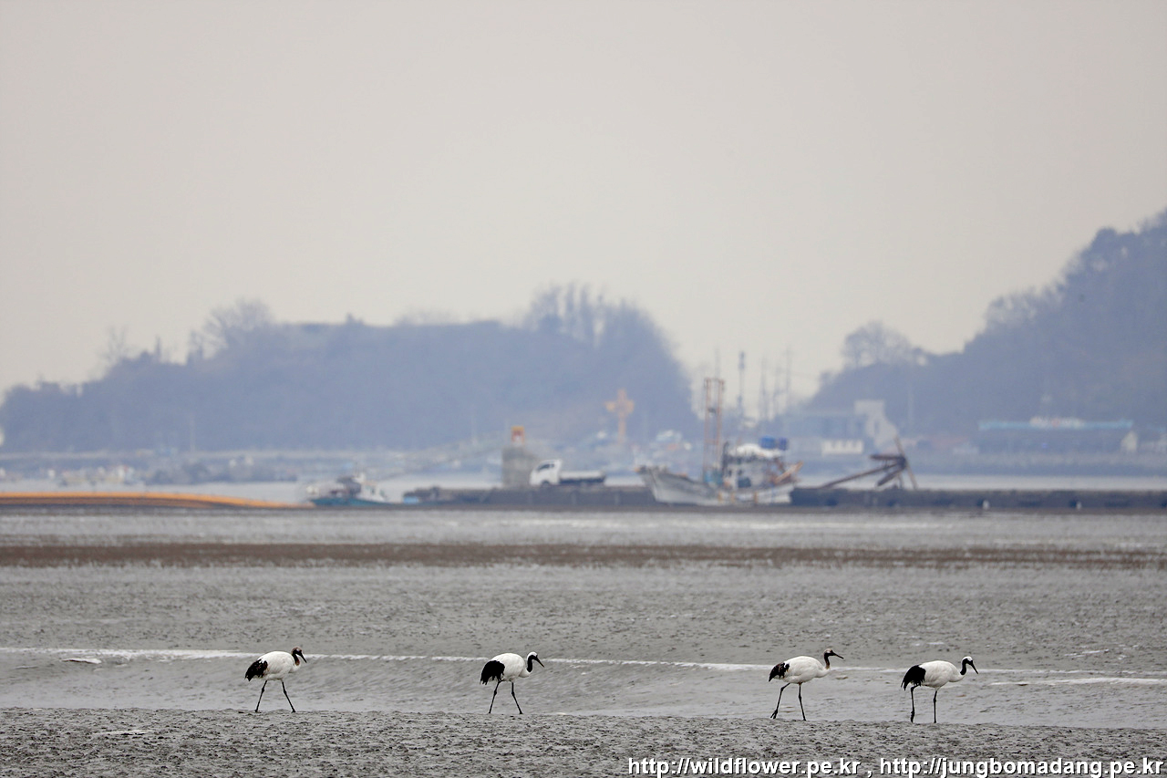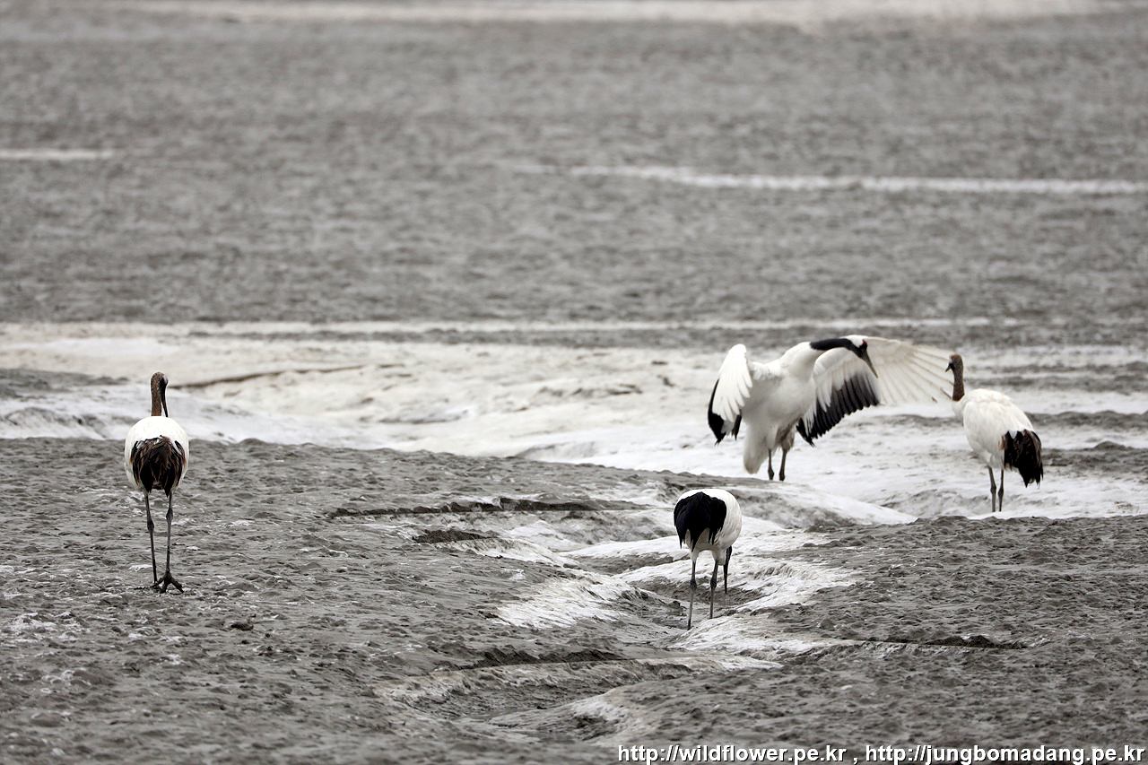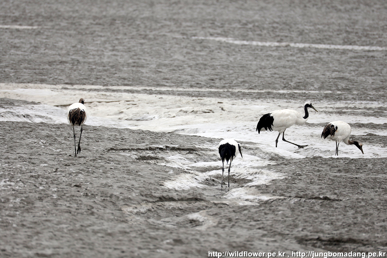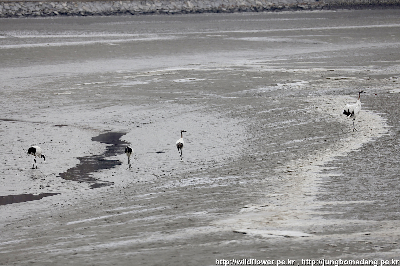 대다수의 두루미가 갯벌 멀찌감치 있어 사진을 담기 쉽지 않겠지만. 800mm의 줌 렌즈가 있는 제겐 큰 문제는 아닌 듯 하네요.