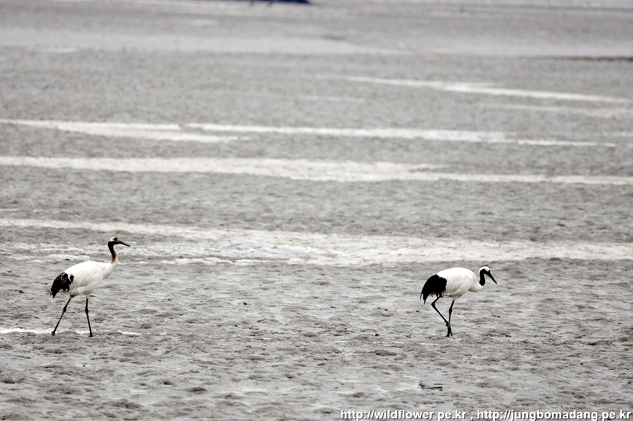 갯벌 중간 중간에 골이 많아서 두루미가 나타났다 사라졌다 합니다.