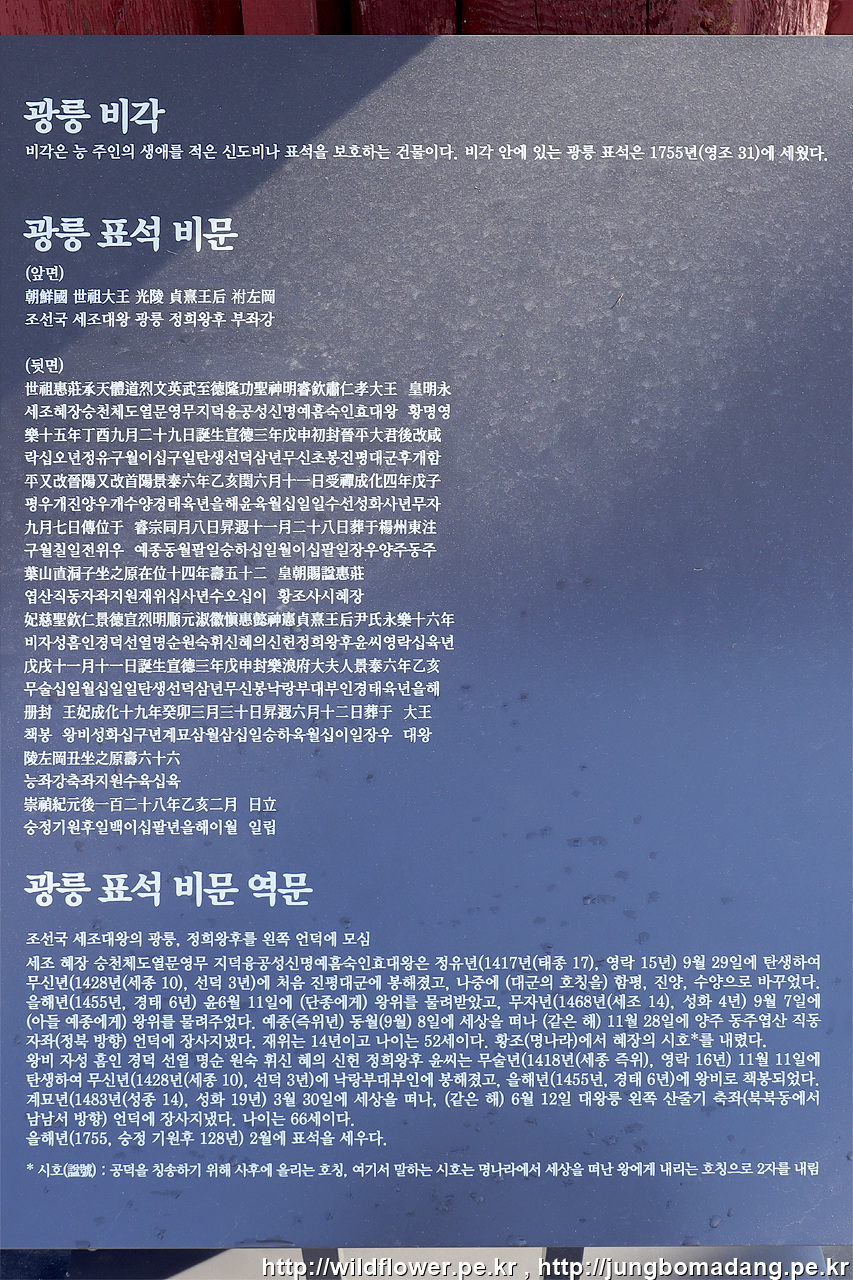 광릉 안내도 - 무지한 말인지 모르겠지만, 광릉이 어느왕의 능인줄 정확히 몰랐습니다. 광해군인가? 했는 데, 세조의 능이네요. 세조보다 수양대군으로 더 기억되는 왕이죠. 어린 단종을 밟고, 왕이 된 것으로 기억합니다.