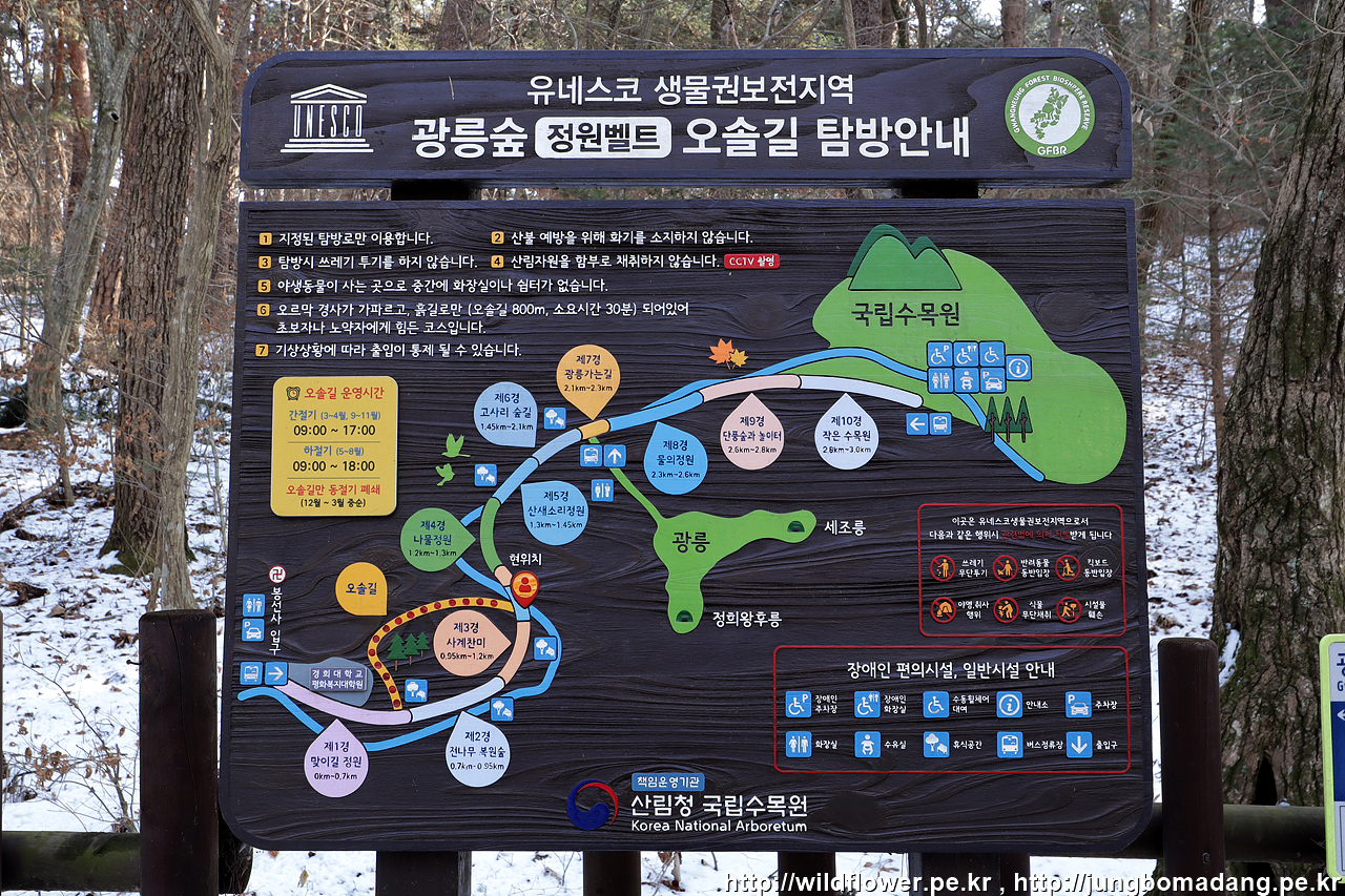 광릉숲 정원벨트 오솔길 탐방안내 - 겨울에는 아마도 안전상 이유로 폐쇄한 듯 합니다.