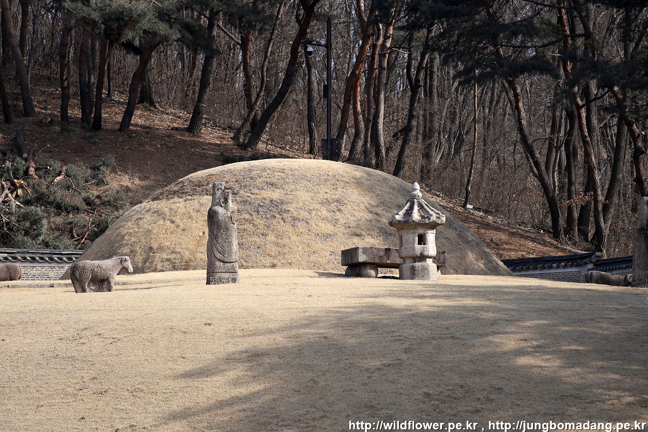 조선21대 영조의 첫번째 왕비인 정성왕후의 무덤입니다. 능의 왼편이 비어 있는 데 영조가 생전에 자리를 만들어 두었지만, 현재 영조의 무덤은 구리 동구릉에 원릉으로 조성되어 있습니다.