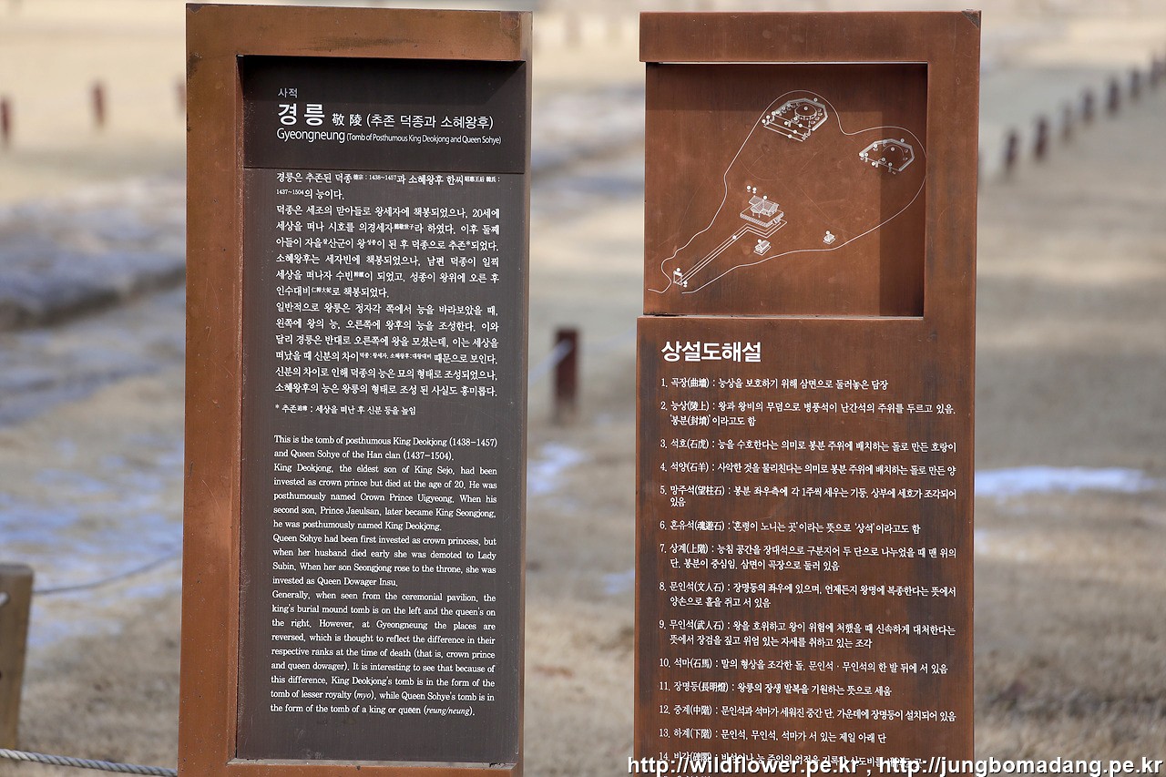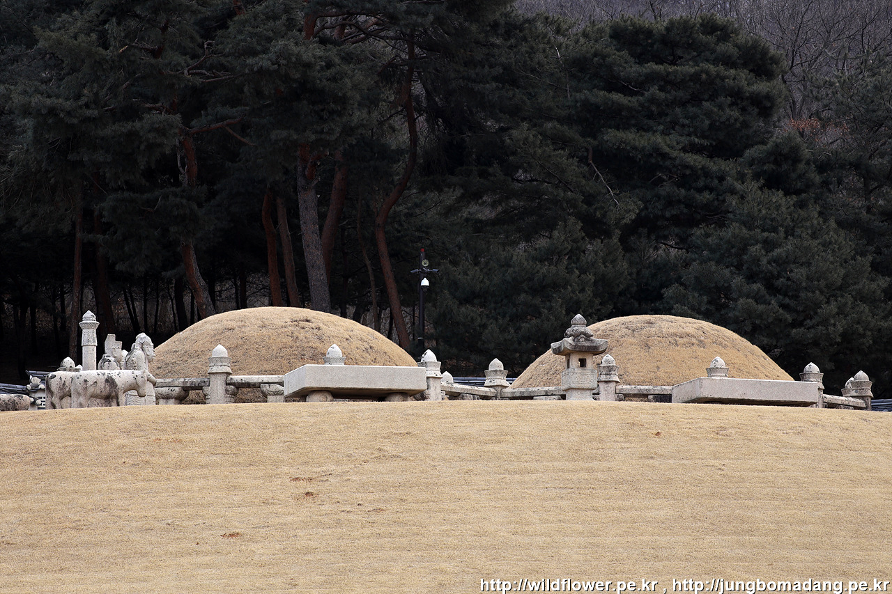 좌측편에 위치한 것은 덕종의 무덤입니다. 덕종은 조선7대 세조의 맏아들(의경세자)이었으나 왕이 되기 전 세상을 떠나 추존되었습니다.