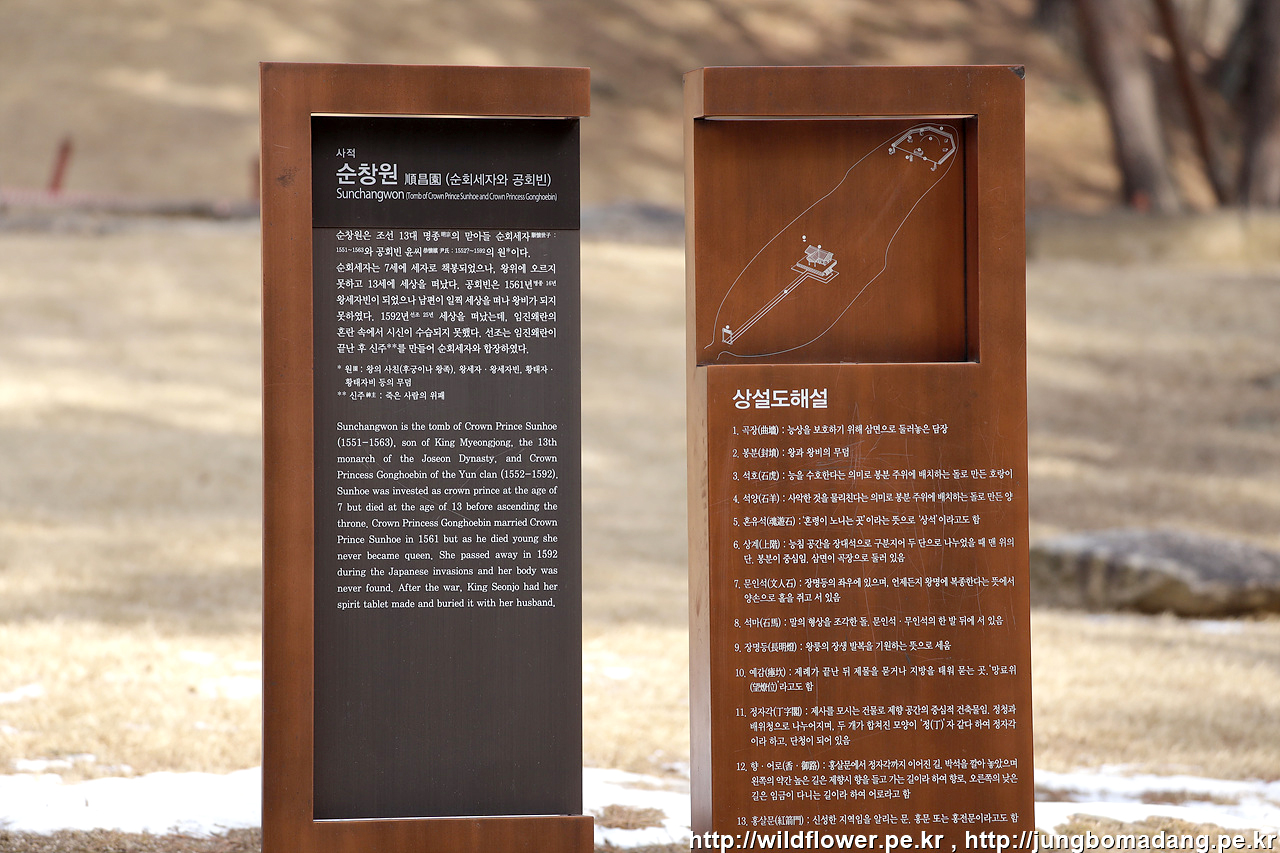 조선 13대 명종 맏아들인 순회세자의 무덤입니다. 세자빈이지만 공회빈 윤씨는 세상을 떠났을 때 임진왜란으로 시신을 못찾아 무덤은 없고 신주로 합장중이라고 합니다.