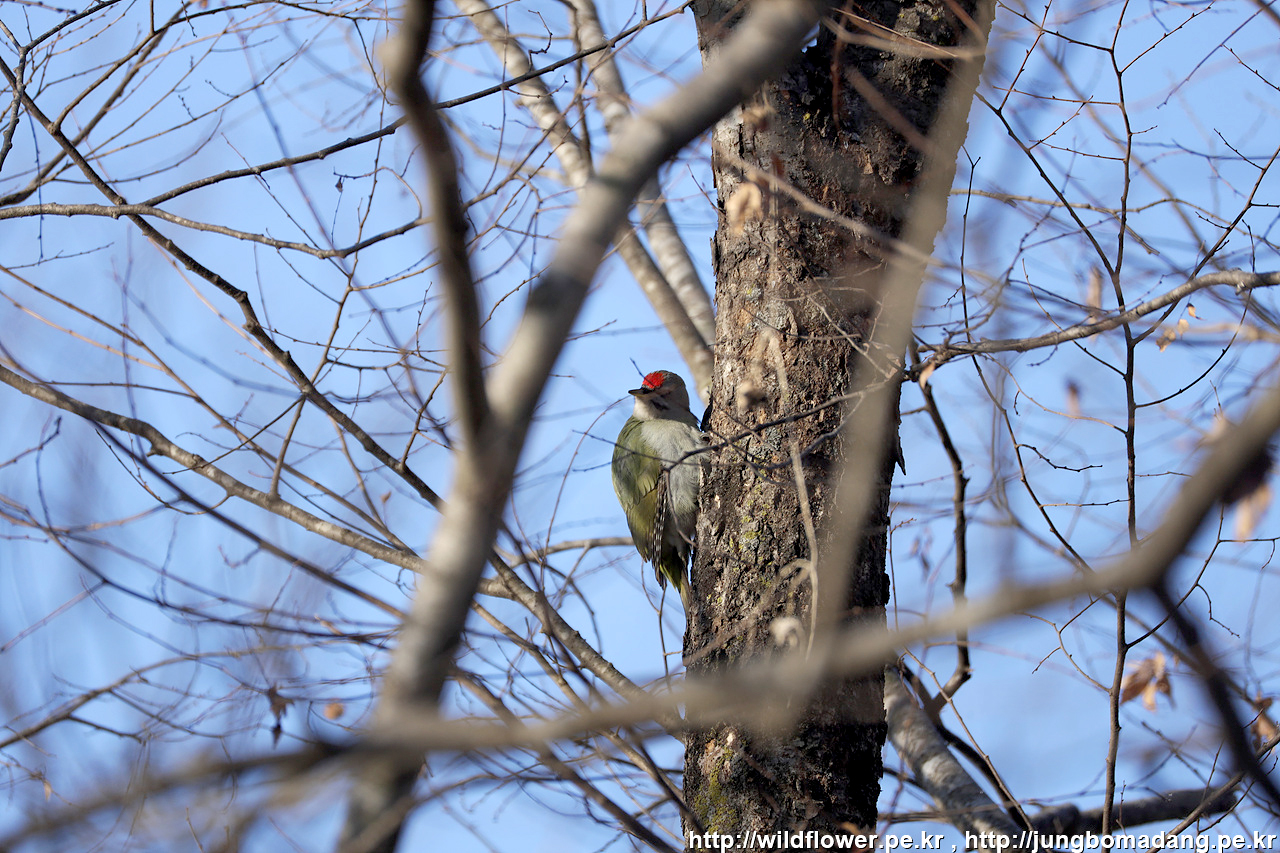 청딱따구리 - 수컷. 크롭 사진입니다.