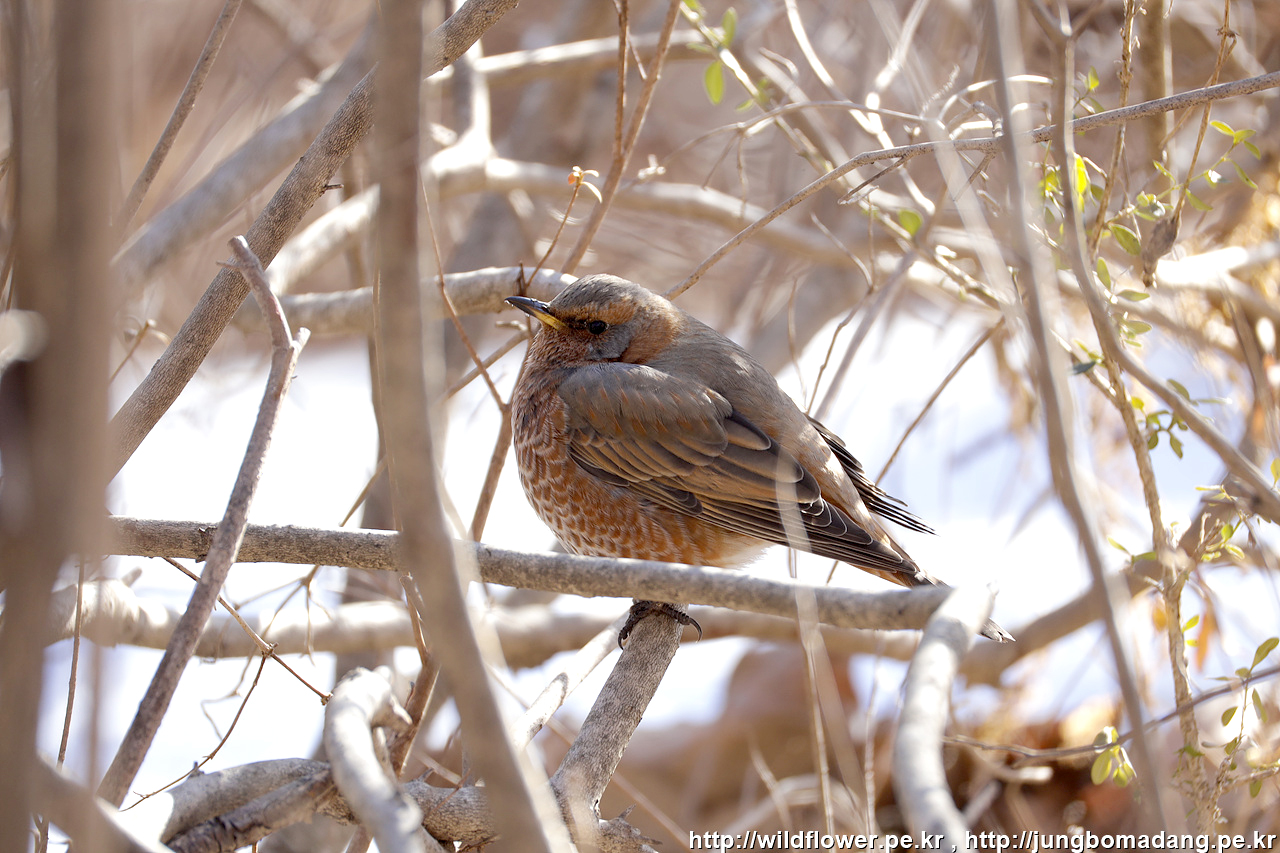 노랑지빠귀 - 암컷. 크롭 사진입니다.