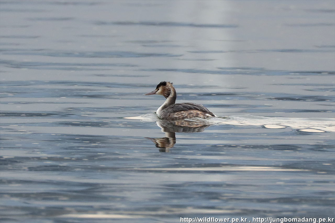 뿔논병아리 - 어린새. 크롭 사진입니다.