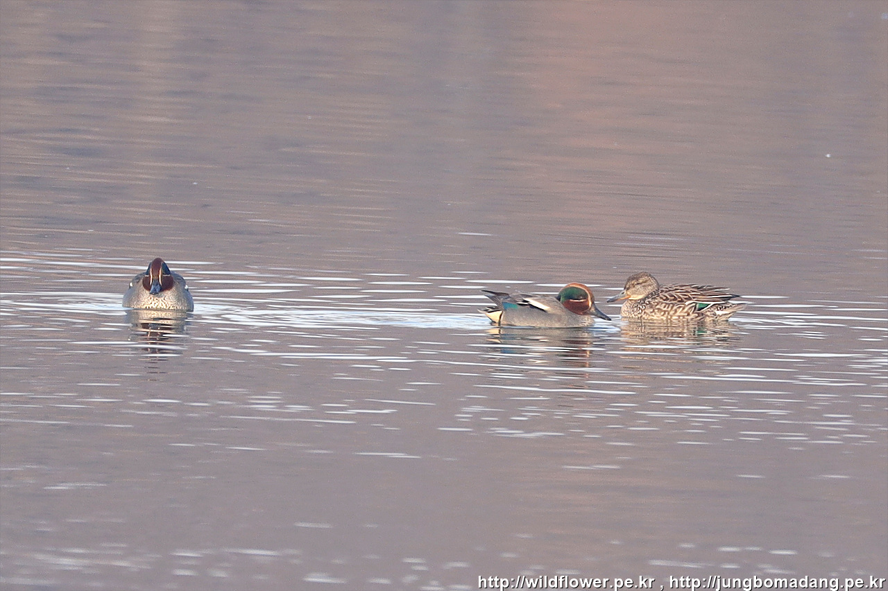쇠오리 - 수컷, 수컷, 암컷. 크롭 사진입니다.