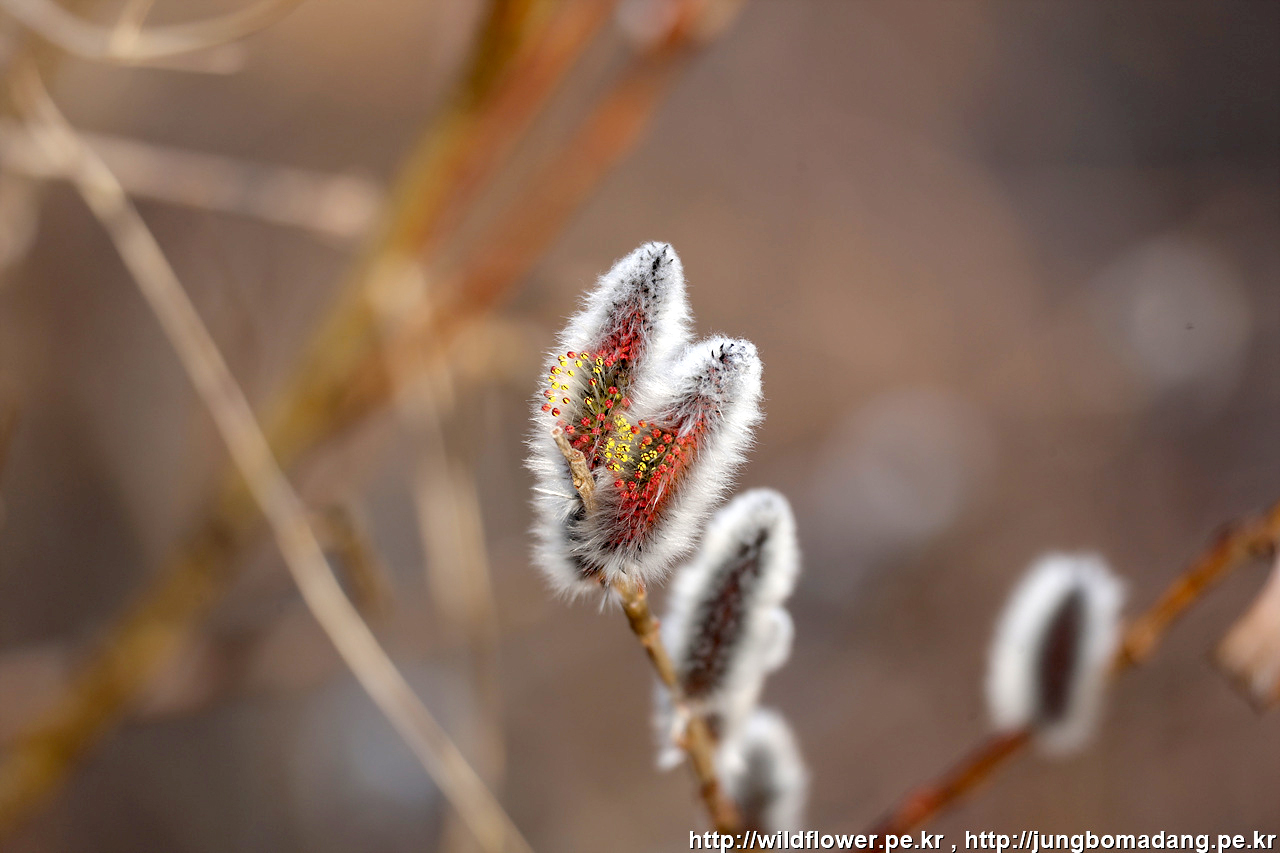 갯버들 - 개화했네요!. 붉은 것이 꽃입니다.
