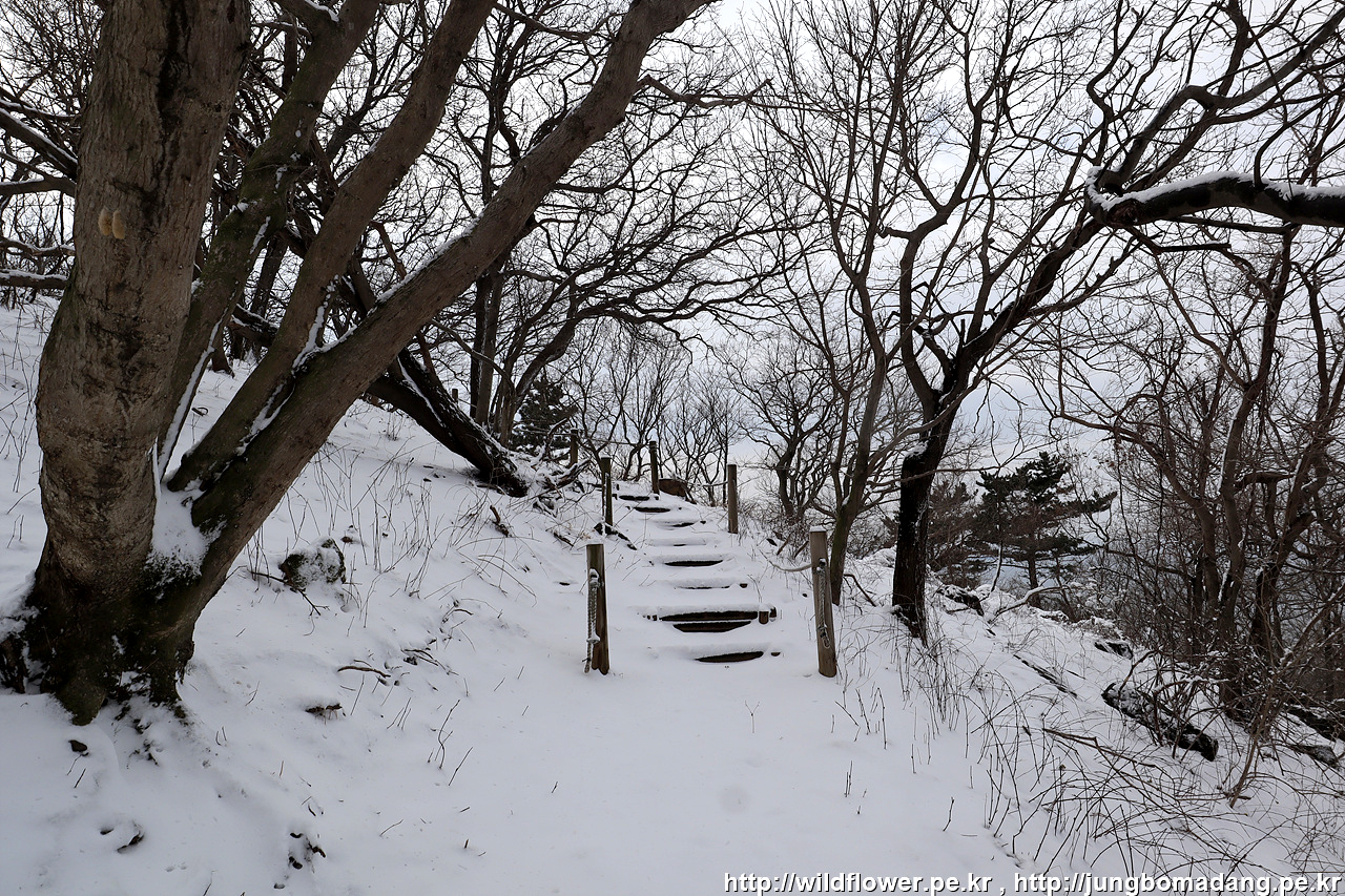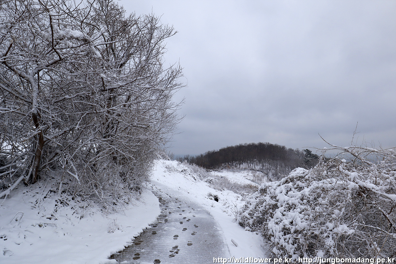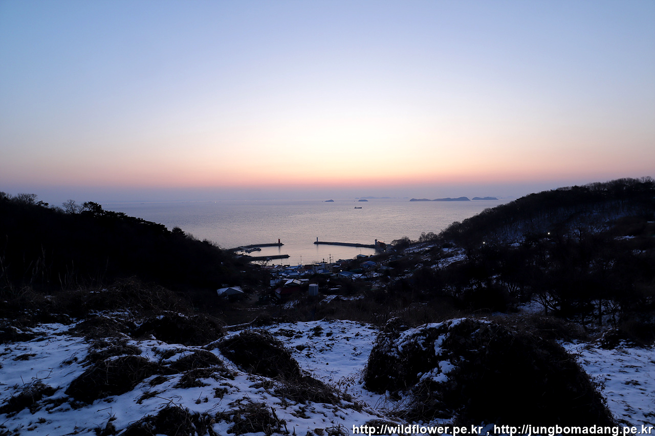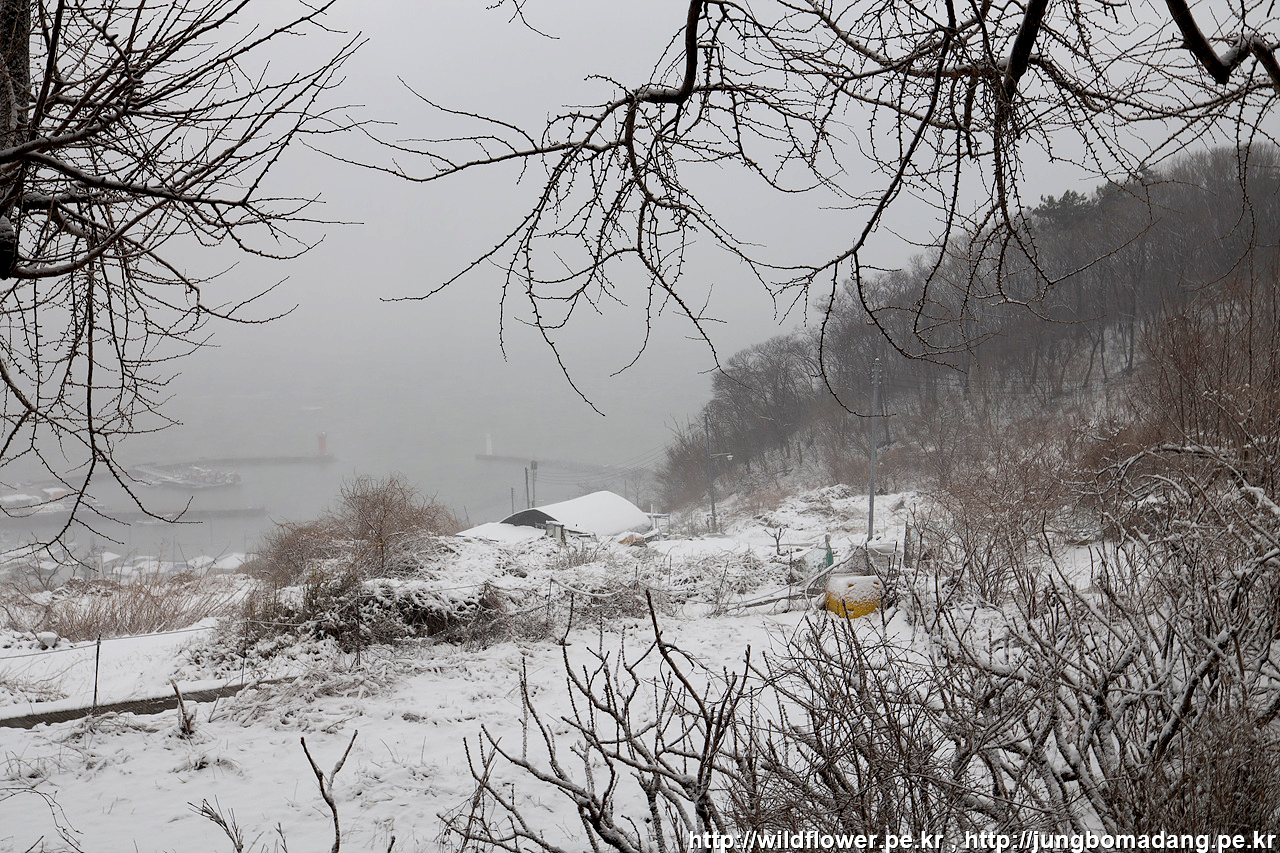 담날 아침이 되니 풍도에 눈이 쌓여서 설국이 되어 있습니다. 그렇다면 어제 이쁘게 피었던 야생화들은!!! 신선하게 냉장상태 보관 중이겠죠? ㅠ