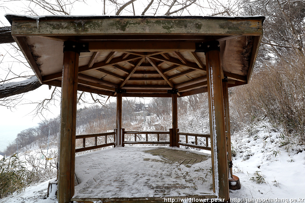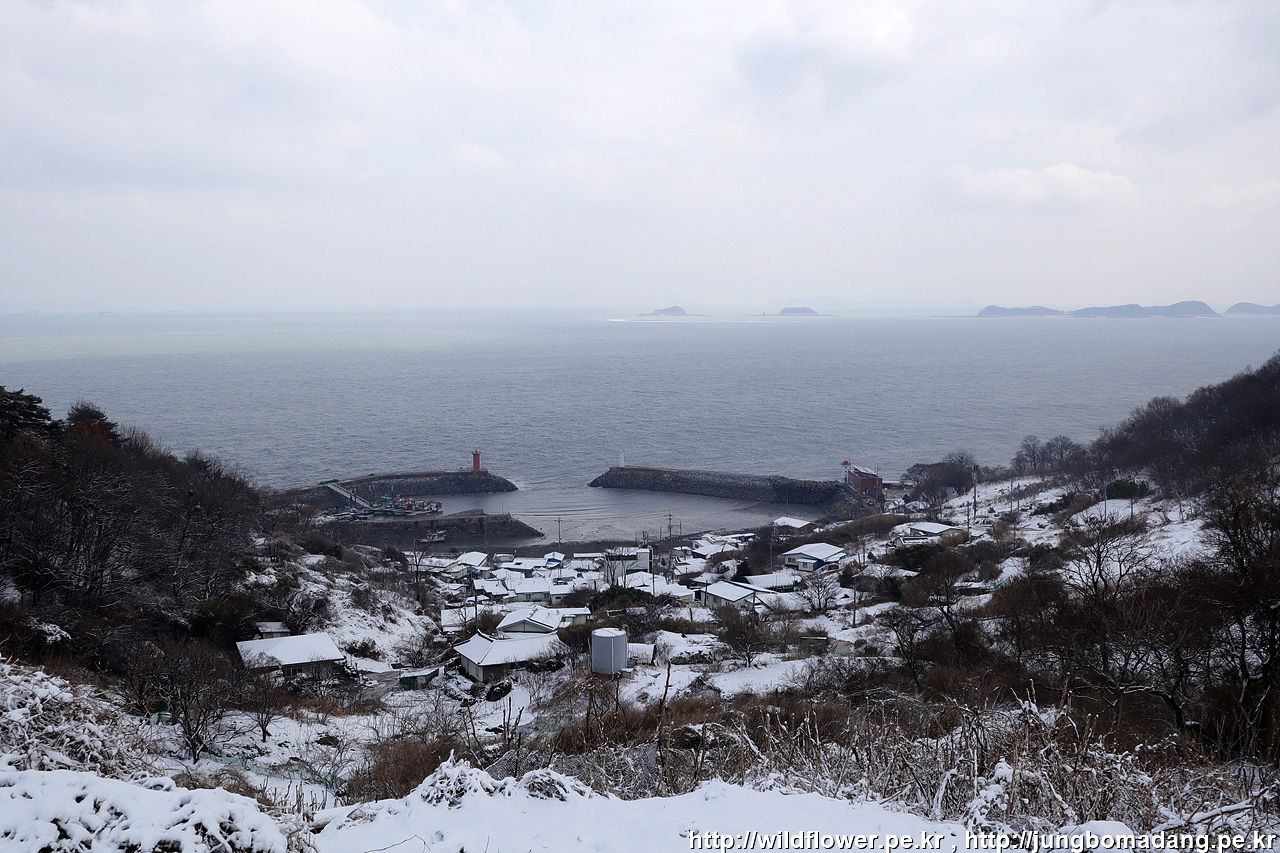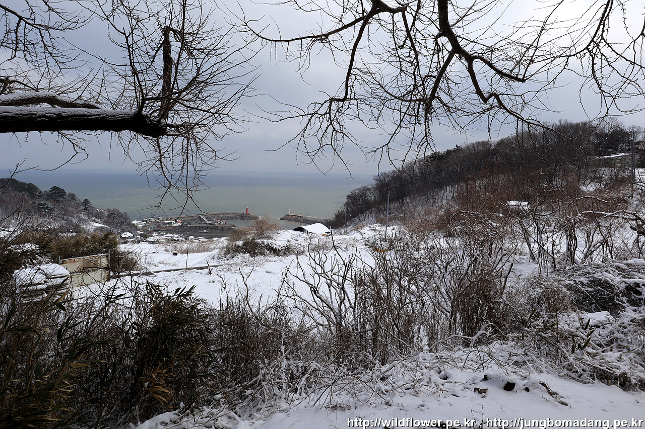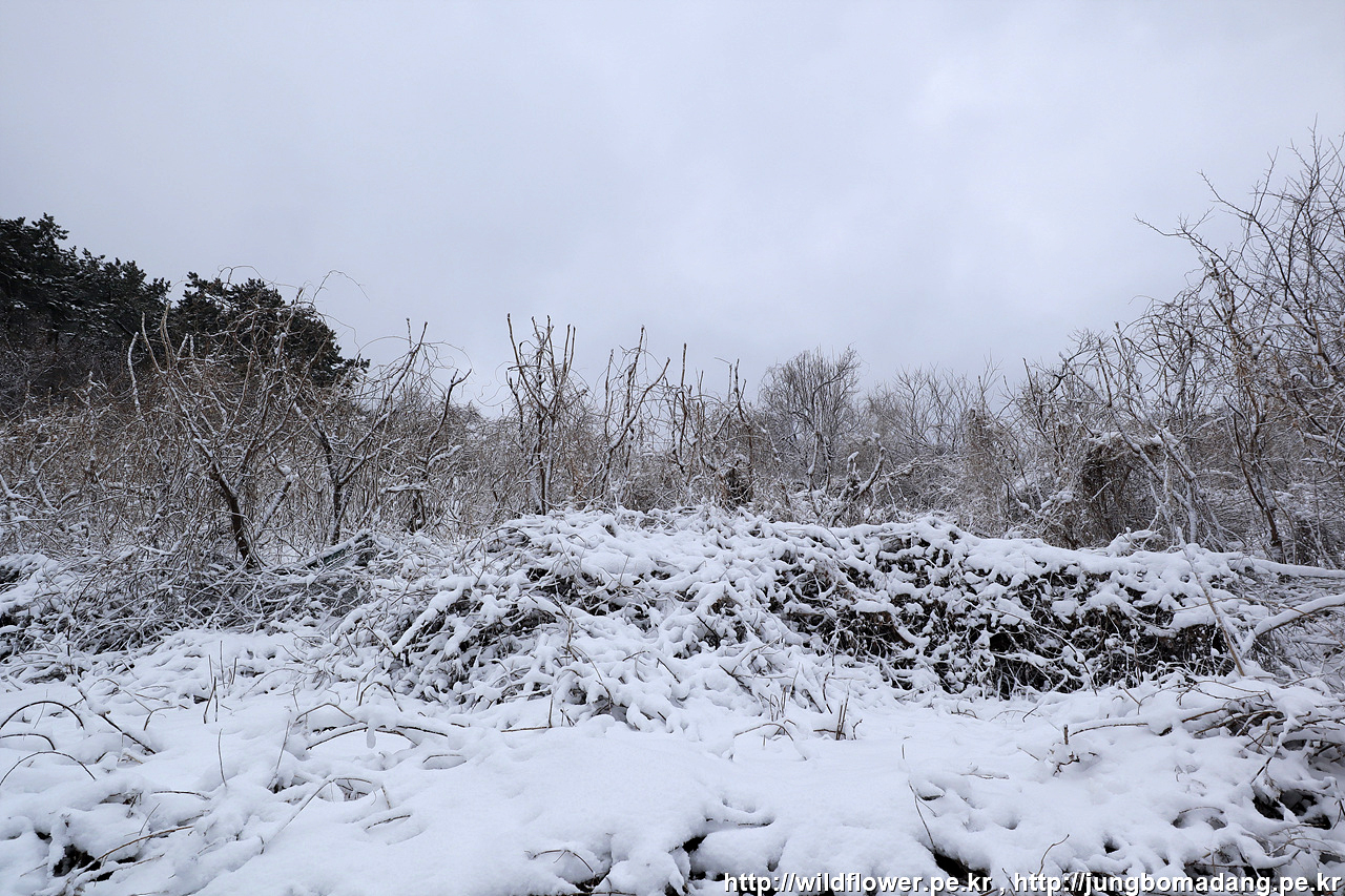 담날 아침이 되니 풍도에 눈이 쌓여서 설국이 되어 있습니다. 그렇다면 어제 이쁘게 피었던 야생화들은!!! 신선하게 냉장상태 보관 중이겠죠? ㅠ