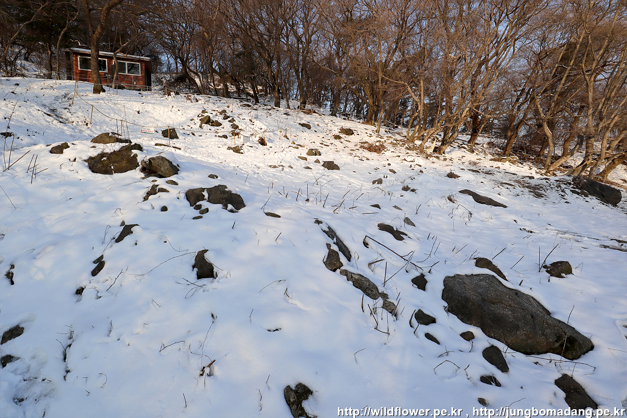 눈 속에 갇힌 야생화 몇장이라도 담아보려고 카메라 가지러 잠시 본부로 왔습니다.