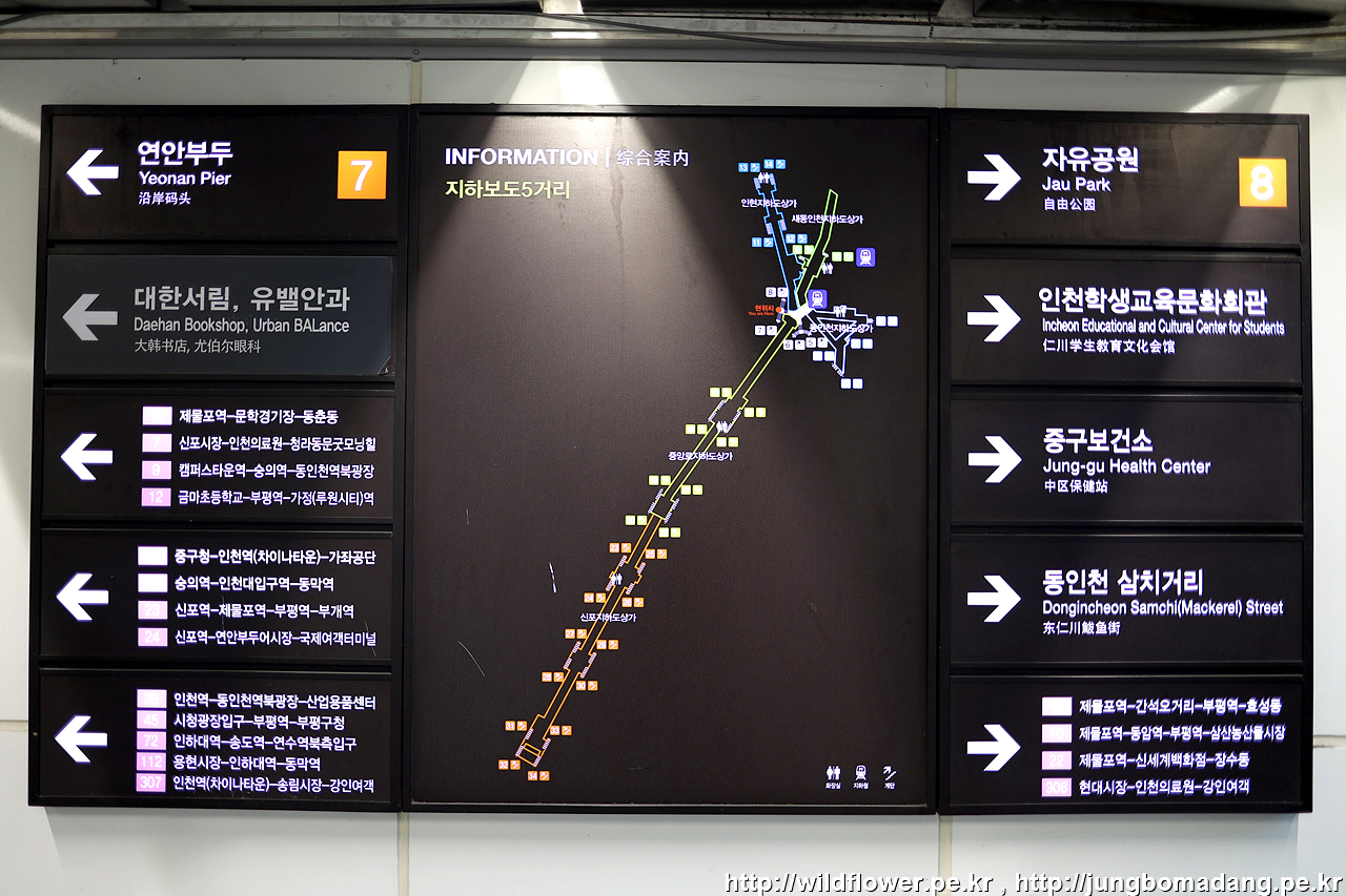 대중교통으로 이동하므로 동인천역 1번 출구로 나가서 지하보도에서 7번 출구(연안부두)로 나갑니다.