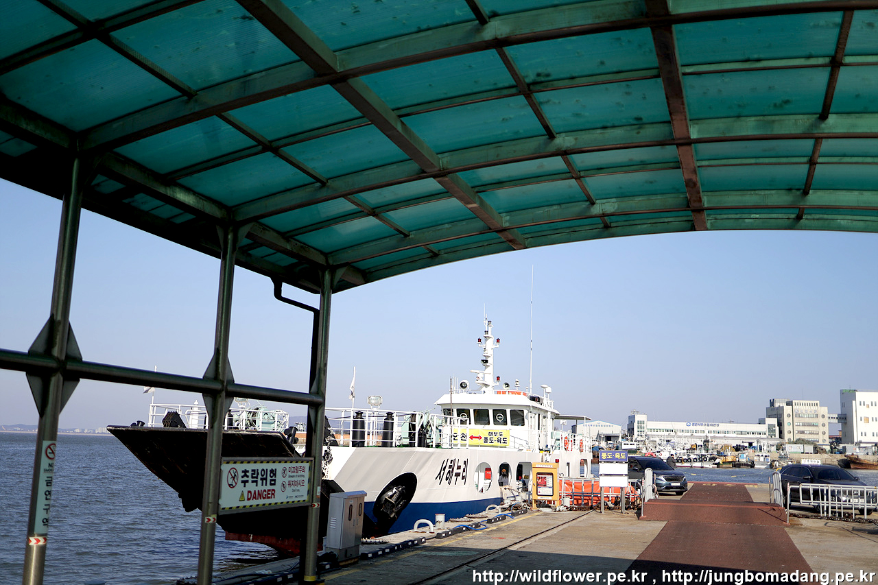 삼길포항에서 온 배. 수십명의 어르신들을 뫼시고 왔네요. 지금 꽃밭은 눈밭이라 조금 고생들 하시겠지요?