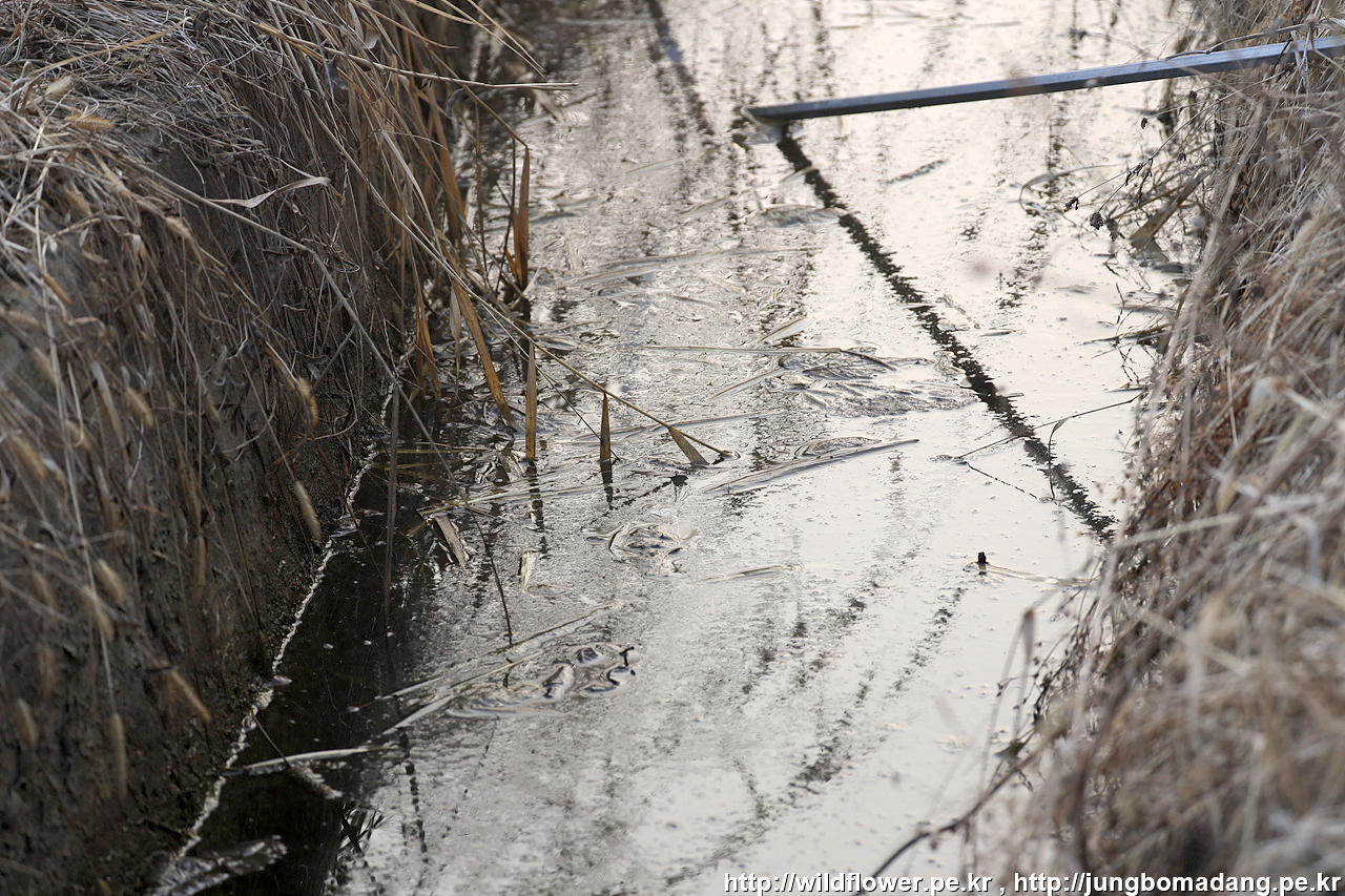 농로 배수로에는 살얼음이 보입니다.