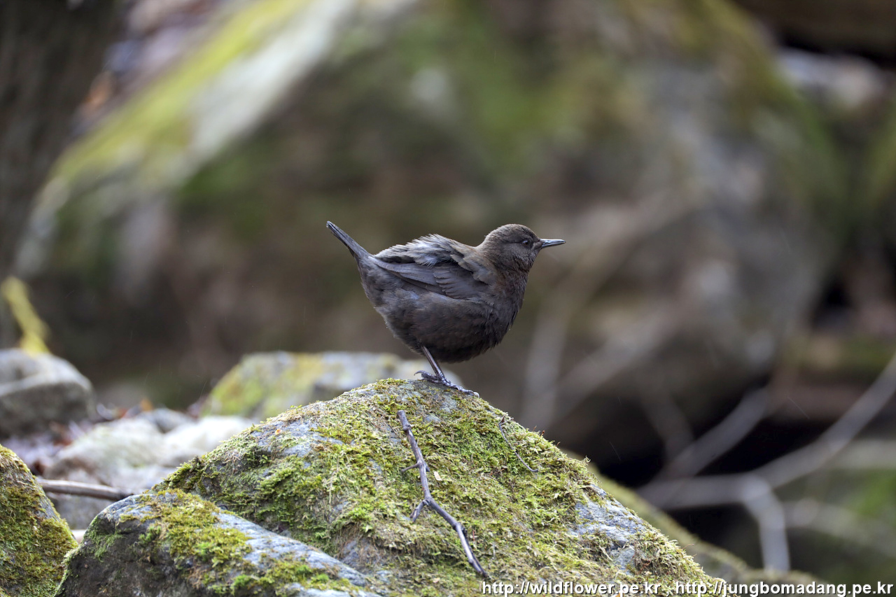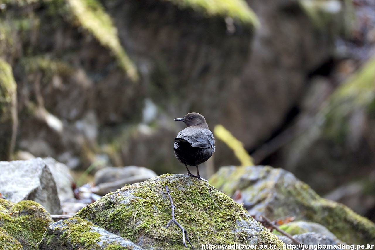 물까마귀 - 처음 만납니다! 그런데 똥똥하니 날개도 짧고 웬지 굴뚝새하고 분위기가 비슷합니다. 물론 굴뚝새보다는 두배 이상 큽니다.