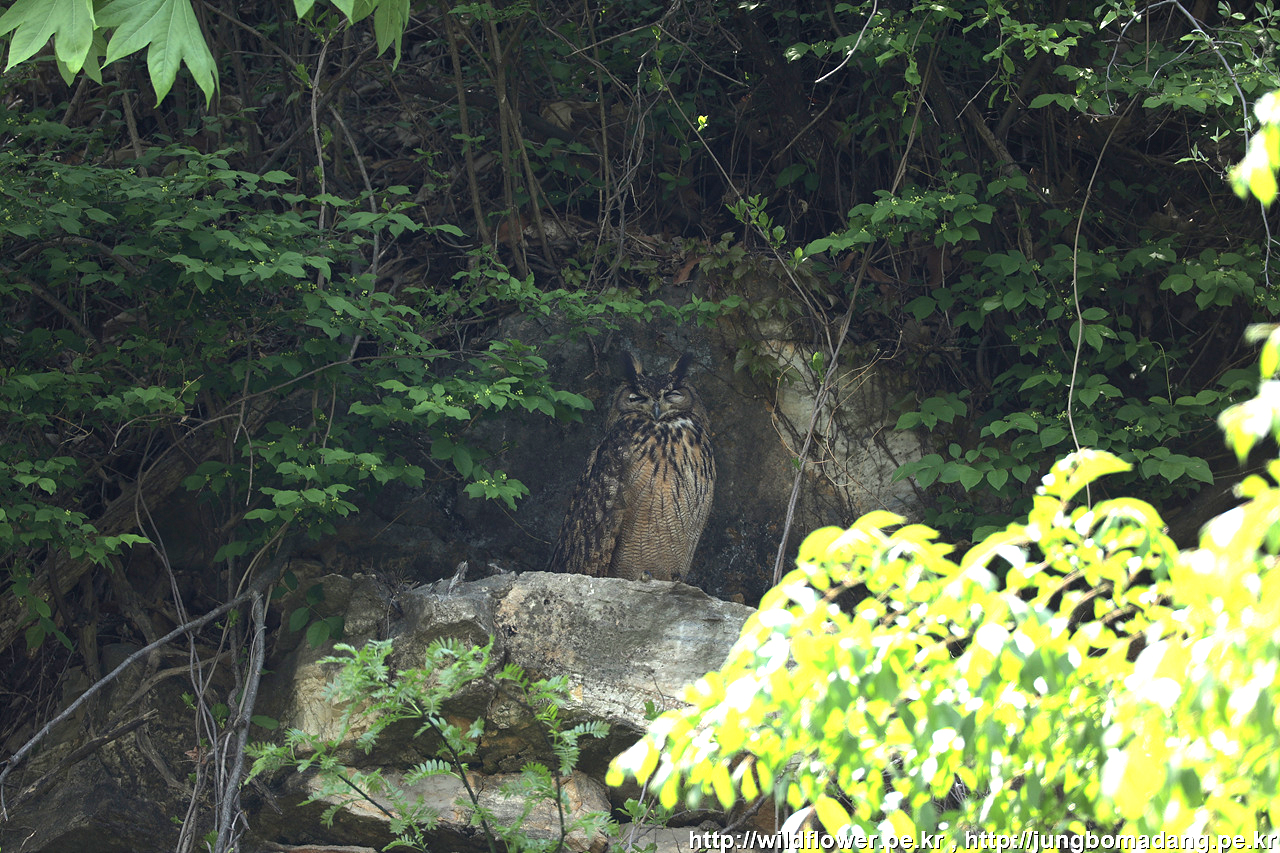 수리부엉이 - 예전에 몇번 방문했지만, 만나지 못했는 데 처음으로 벼랑에서 쉬고 있는 모습을 관찰했습니다.