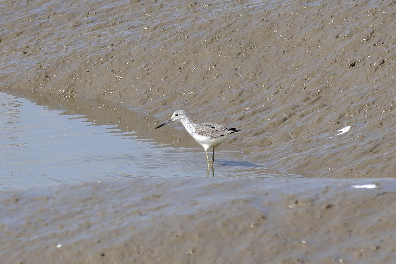 길을 걷고 있는 데 탐조를 하는 것으로 보이는 차량이 제 옆에 멈춰서 이런 저런 이야기를 하다 얼마 가지 않아 멈춰 있네요. 그곳에는 물이 드러난 갯벌에 도요 무리들이 먹이사냥을 하고 있습니다.