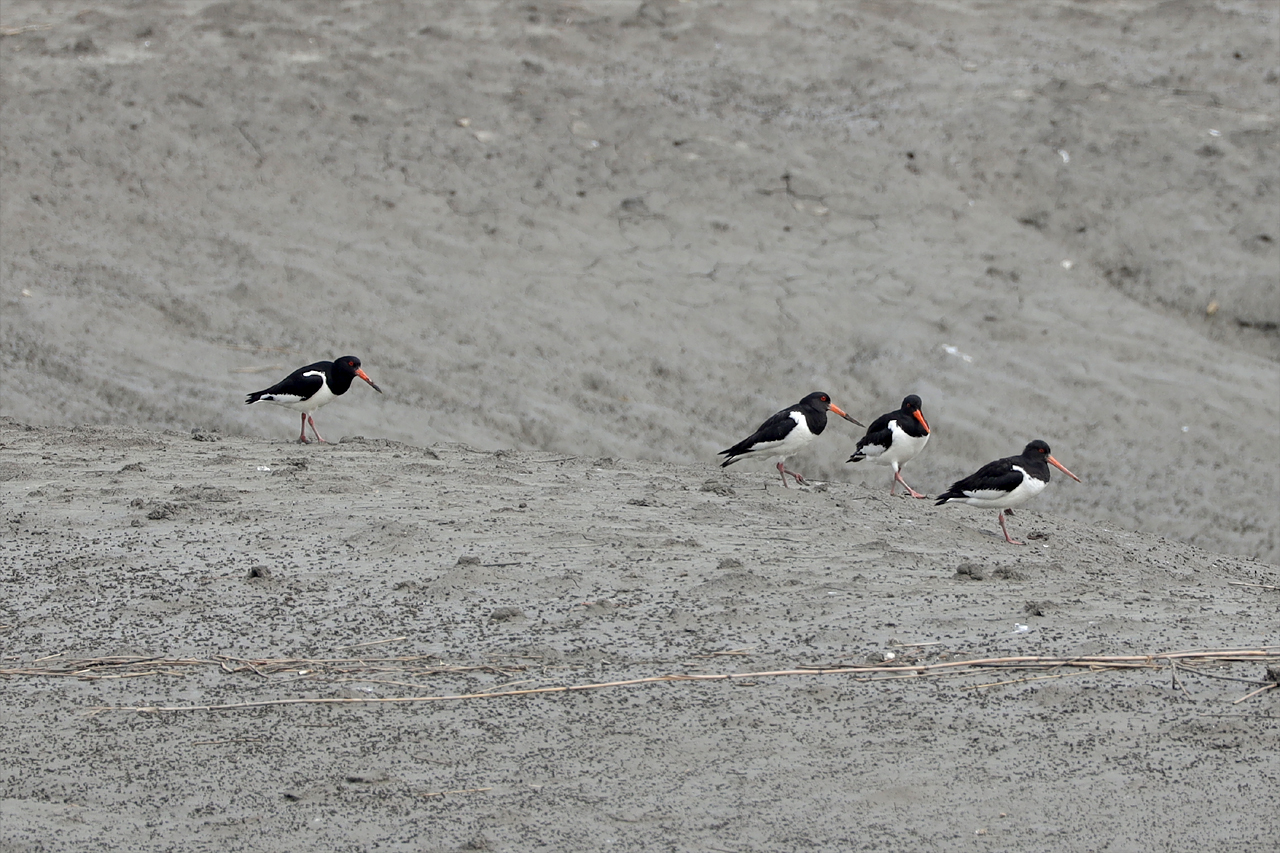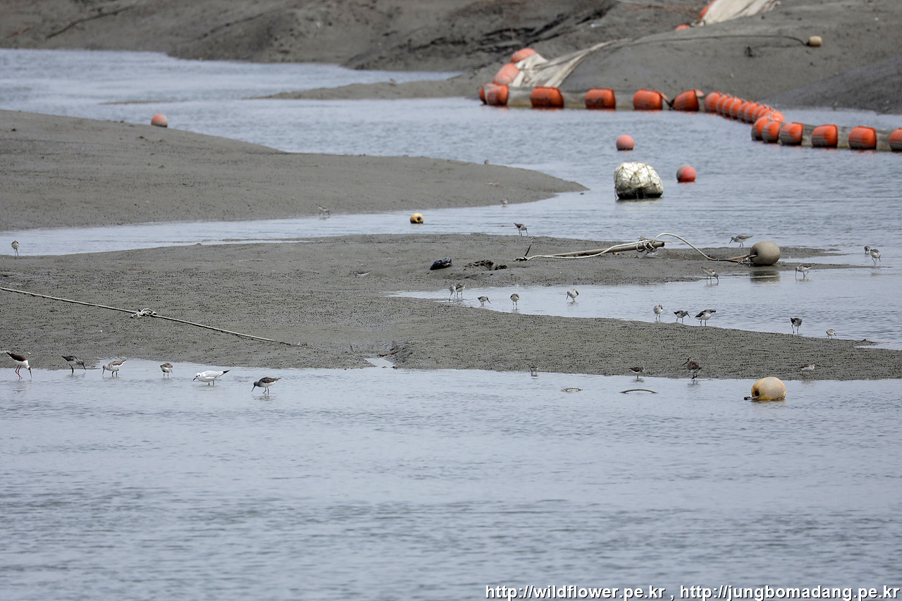 도요새 무리들이 쉬고 있습니다.