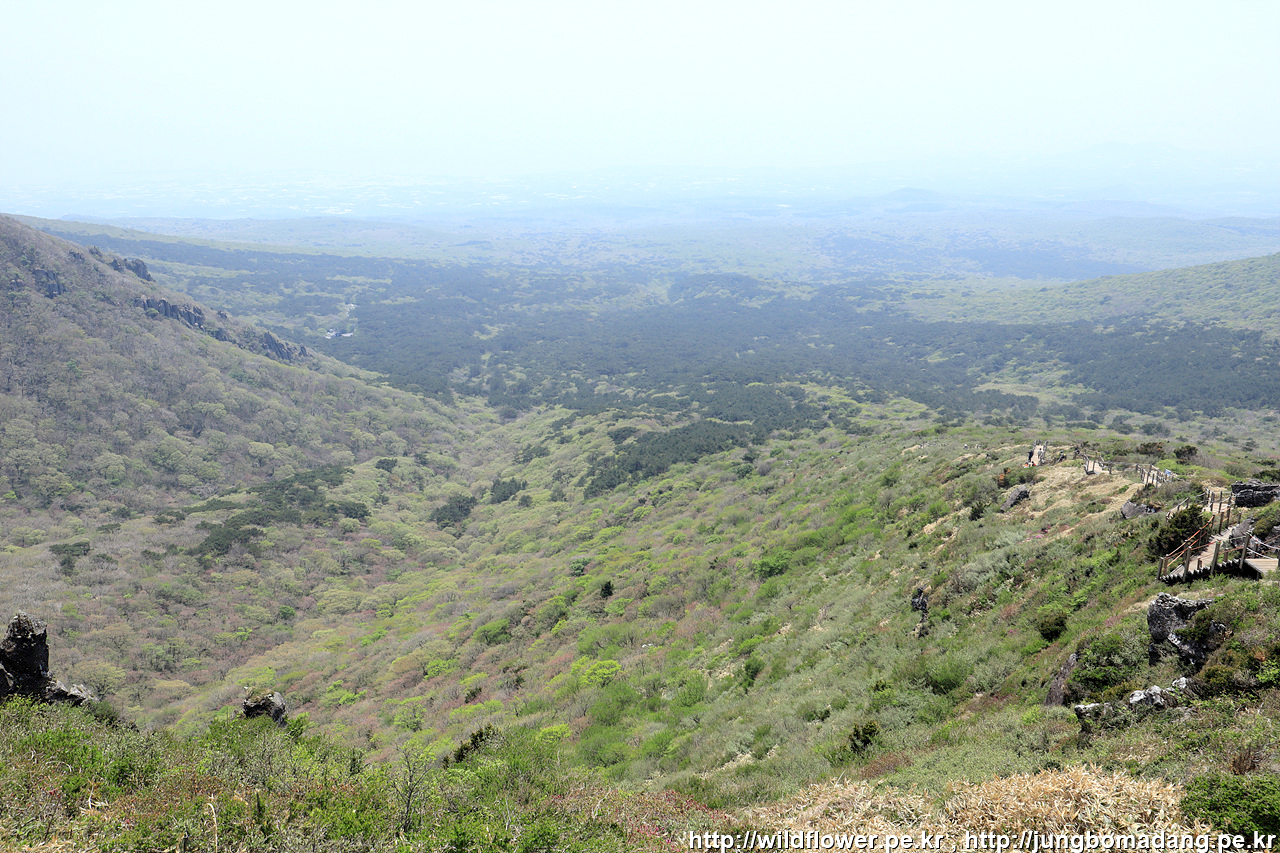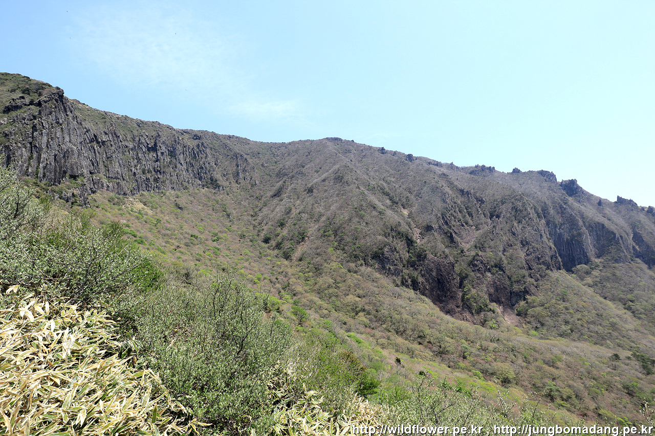 윗세오름을 지나 영실 하산길. 전망대에서 바라본 남벽