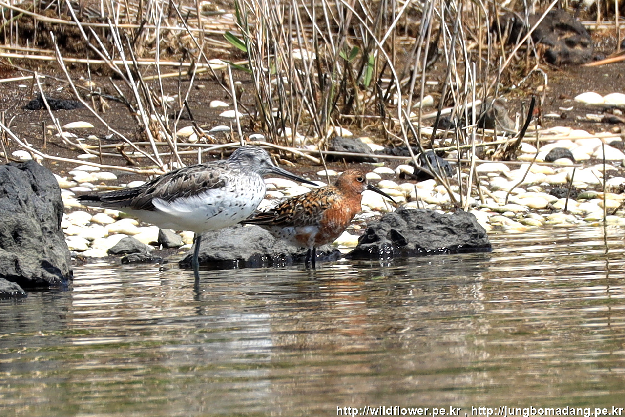 청다리도요, 붉은갯도요 - 크롭 사진입니다.