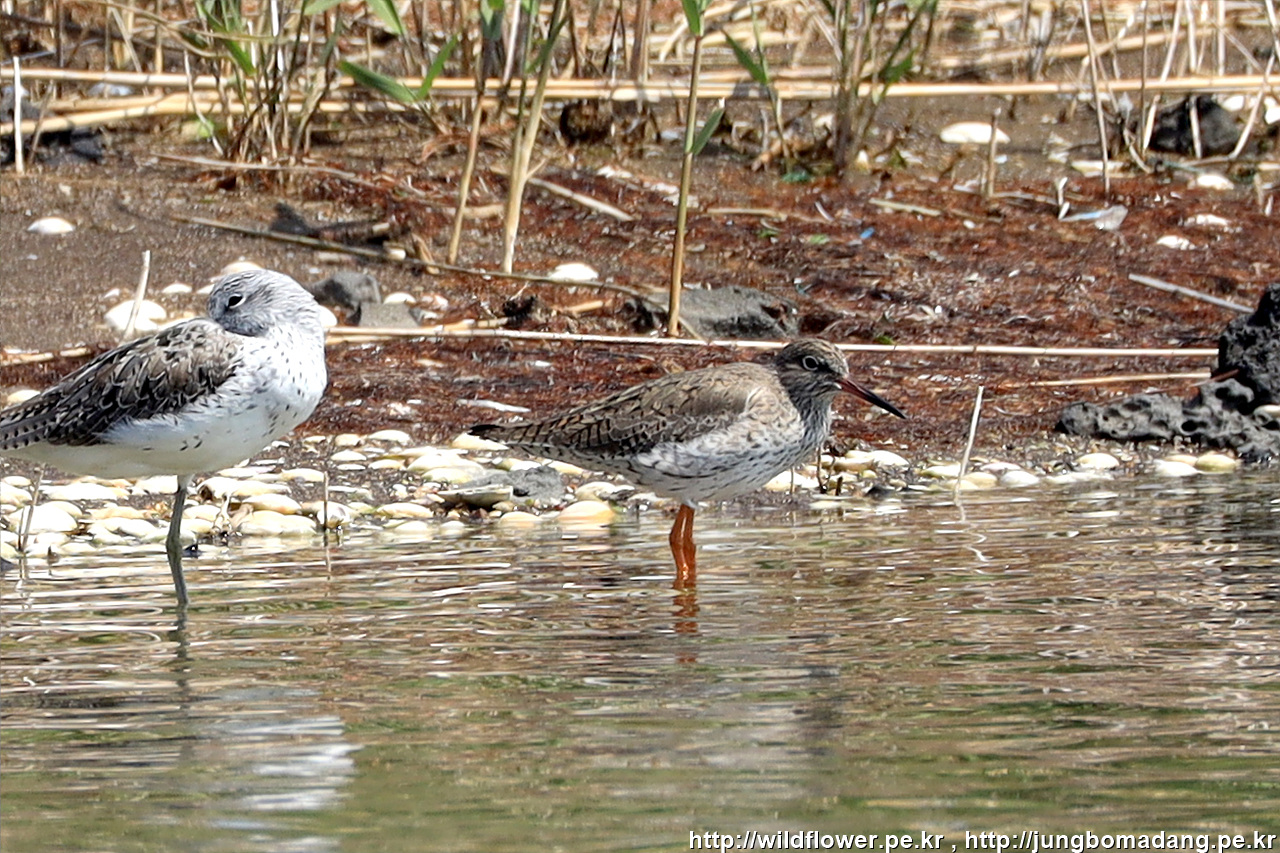 붉은발도요, 청다리도요 - 크롭 사진입니다.