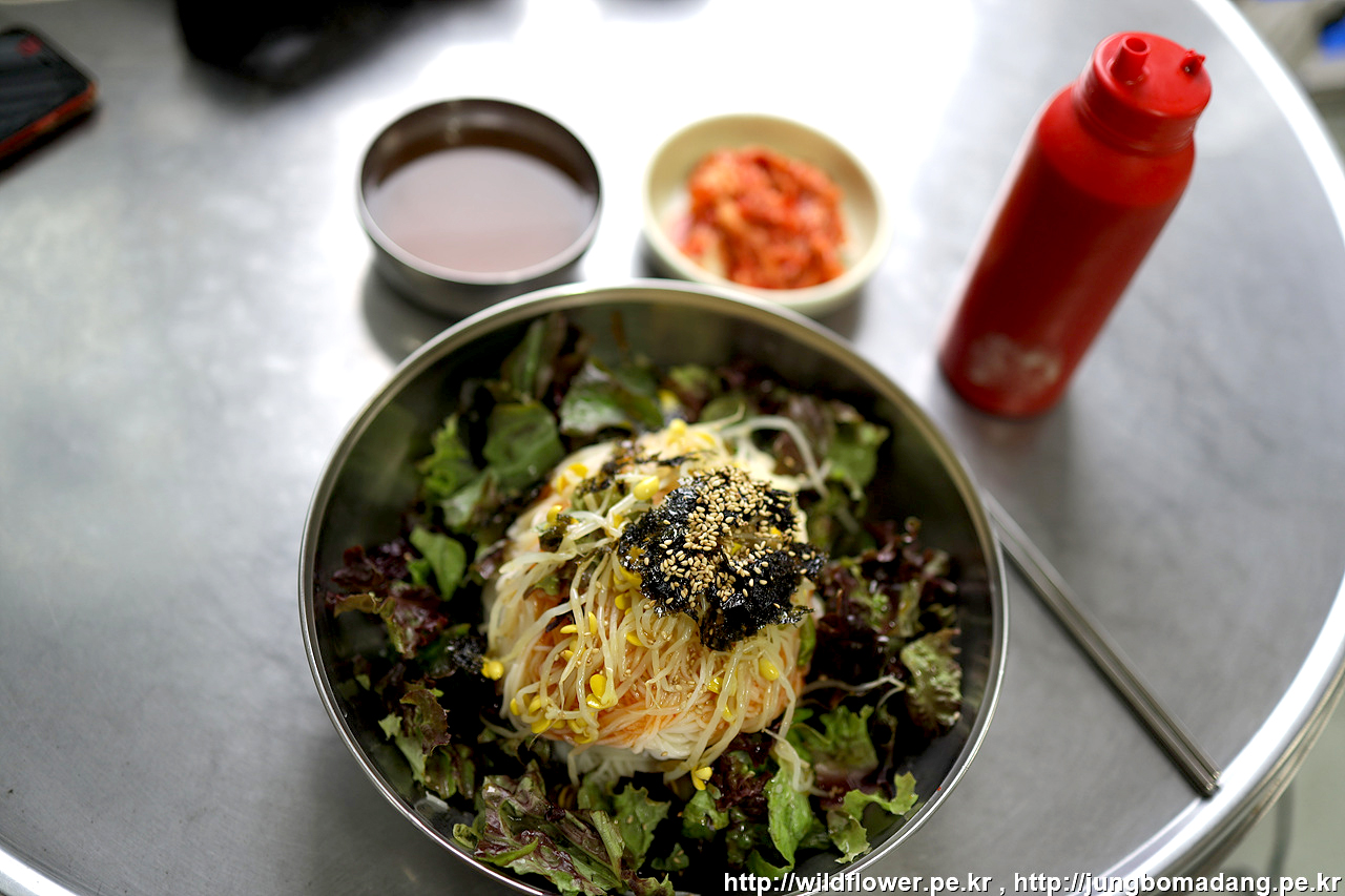 비빔국수 - 보통사이즈인데 일반 국수집의 3인분 분량입니다. 곱배기는 저도 도전하기 어렵겠네요.