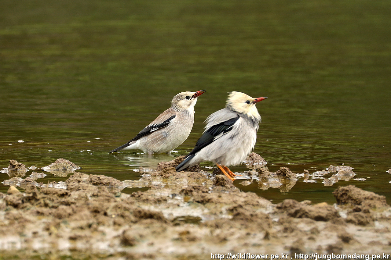 붉은부리찌르레기 - 암컷, 수컷. 크롭 사진입니다.