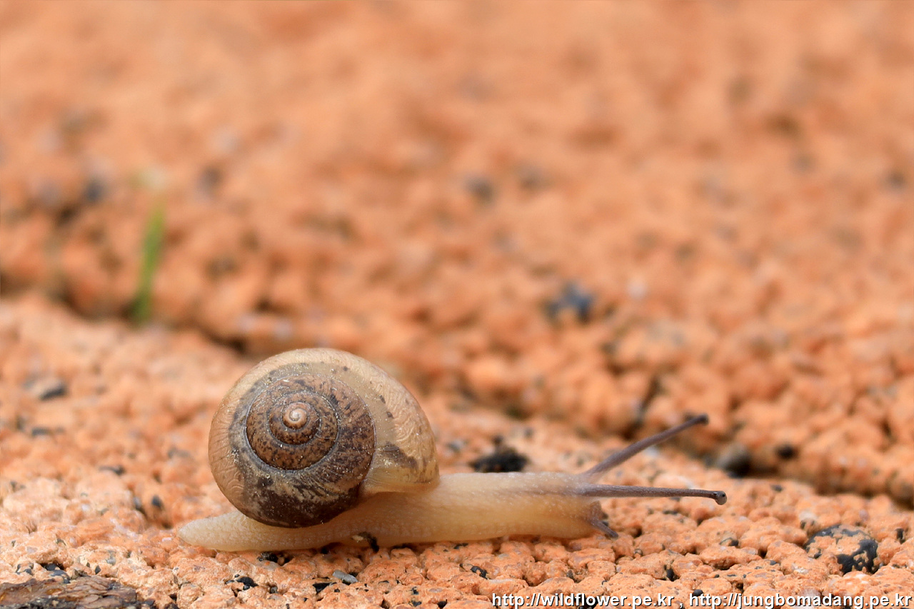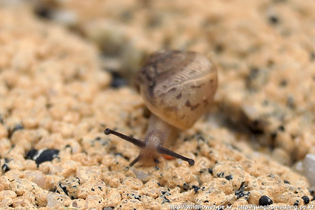 달팽이 - 어제 새벽 비가 내렸는 지 땅은 촉촉하고 달팽이가 부지런히 이사를 가고 있습니다.