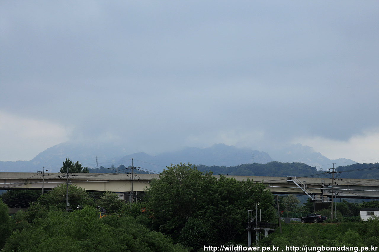 북한산 중간부 이상이 구름이 뒤덮혀 있네요.