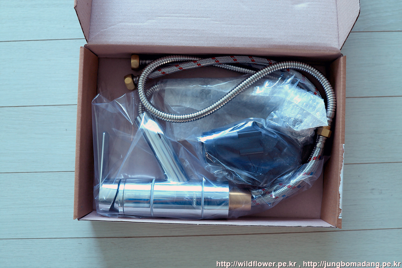 주방 수전을 설치하기 위해 언박싱을 감행합니다. 인터넷으로 할인 쿠폰 등등 해서 배송 포함 2만원 정도에 구매합니다. 무려! 메이드 인 코리아. 우리나라 제품입니다.