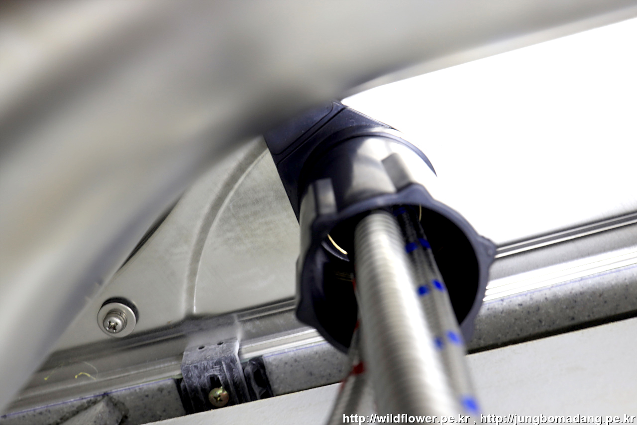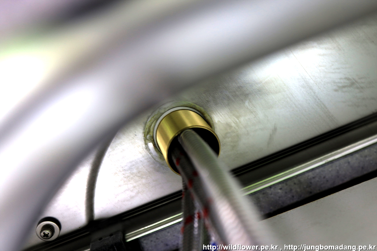 샹크와의 만남을위해 호스들(토수관, 온수 고압호스, 냉수 고압호스)에 끼워 줍니다.