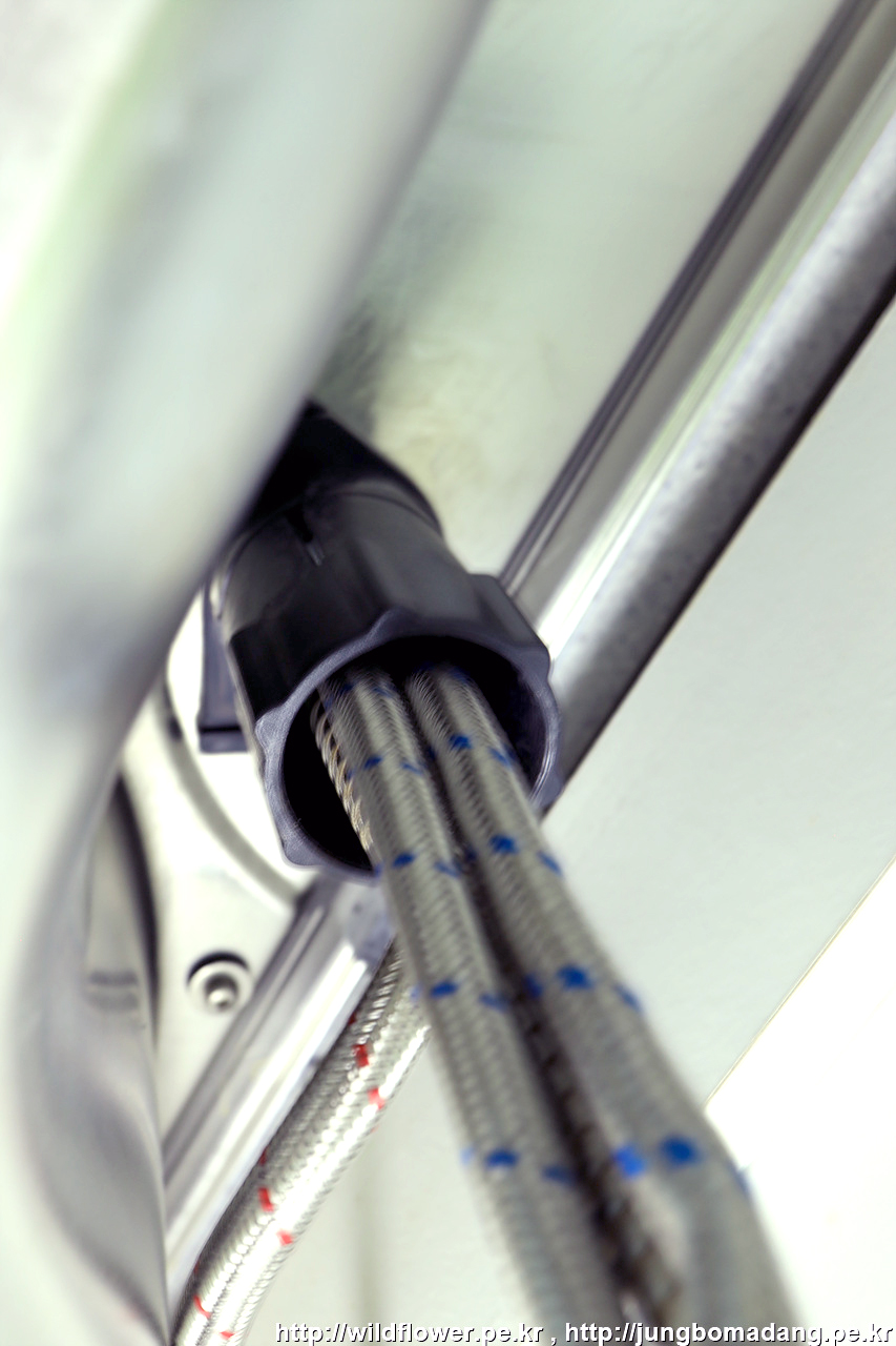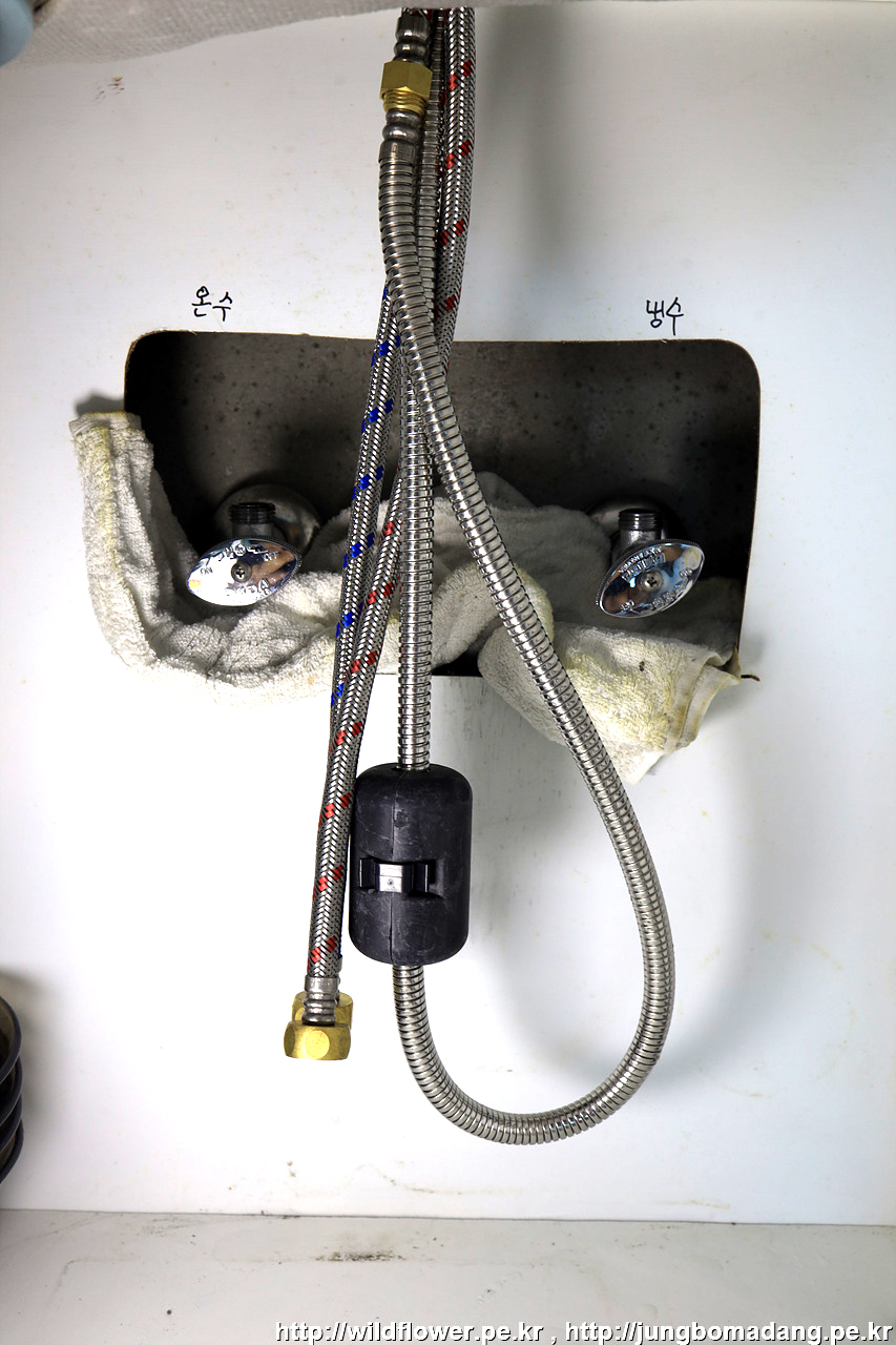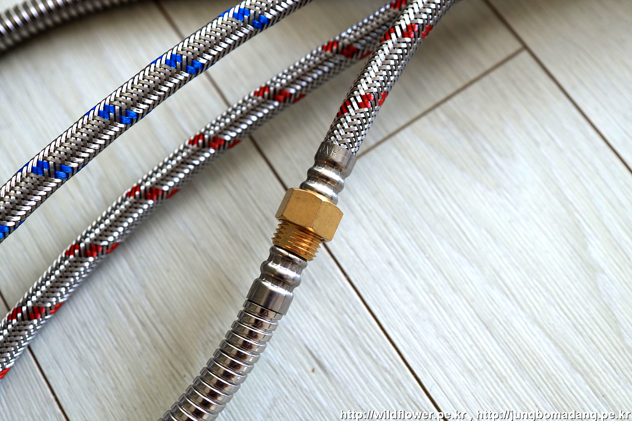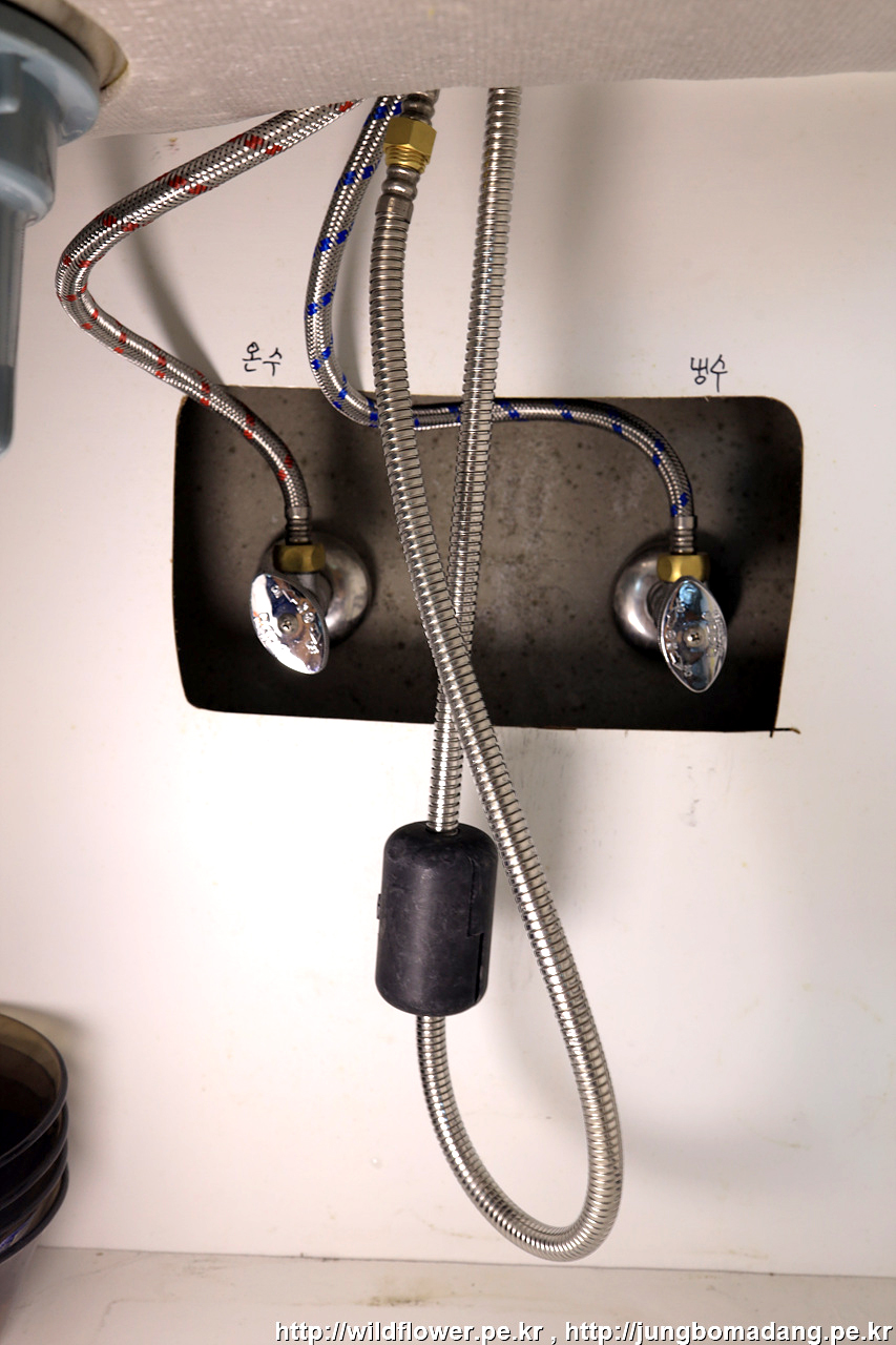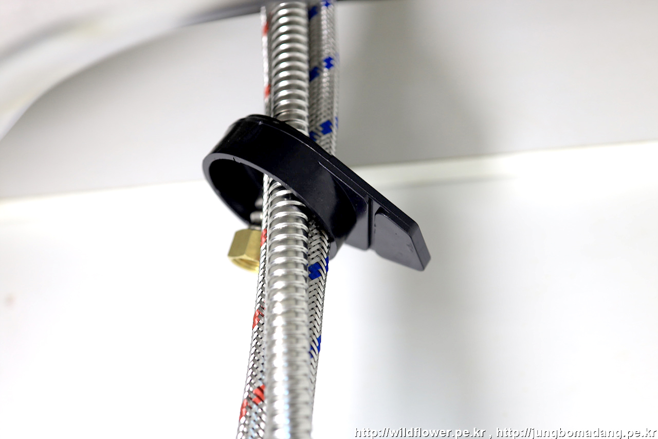 마지막으로, 온수, 냉수 고압 호스를 체결해 주면 됩니다.