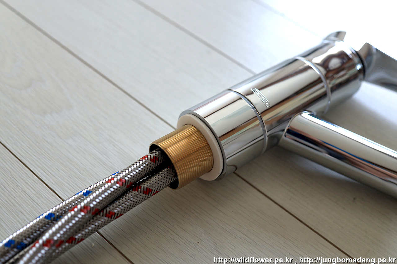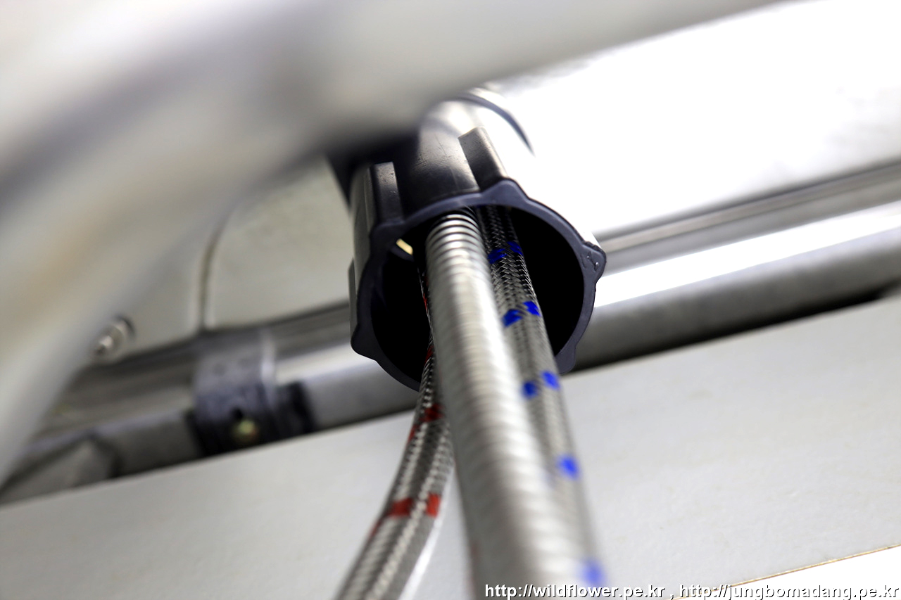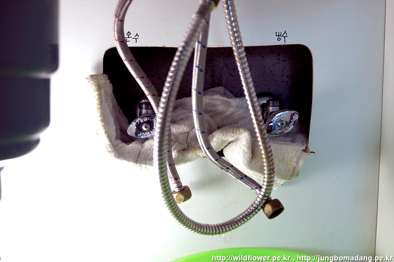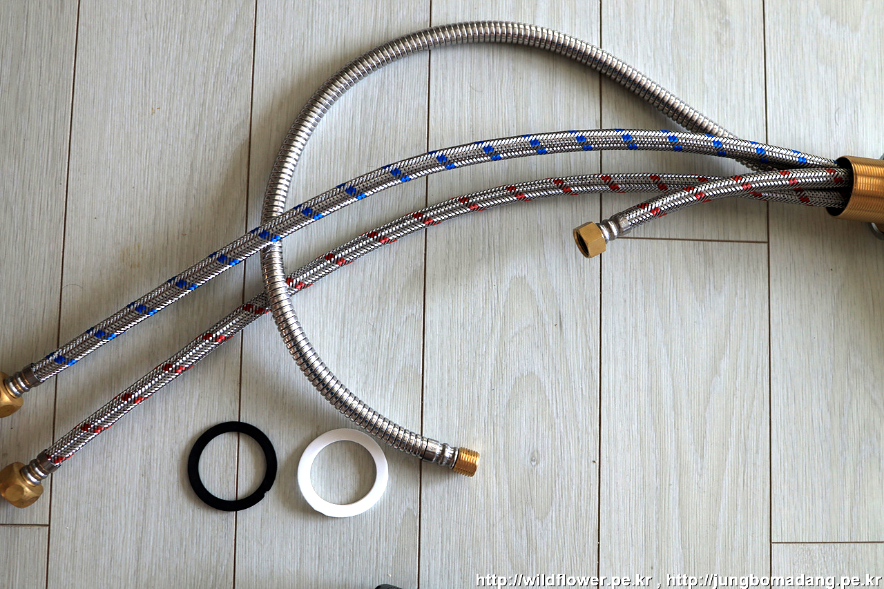 마지막으로, 온수, 냉수 고압 호스를 체결해 주면 됩니다.