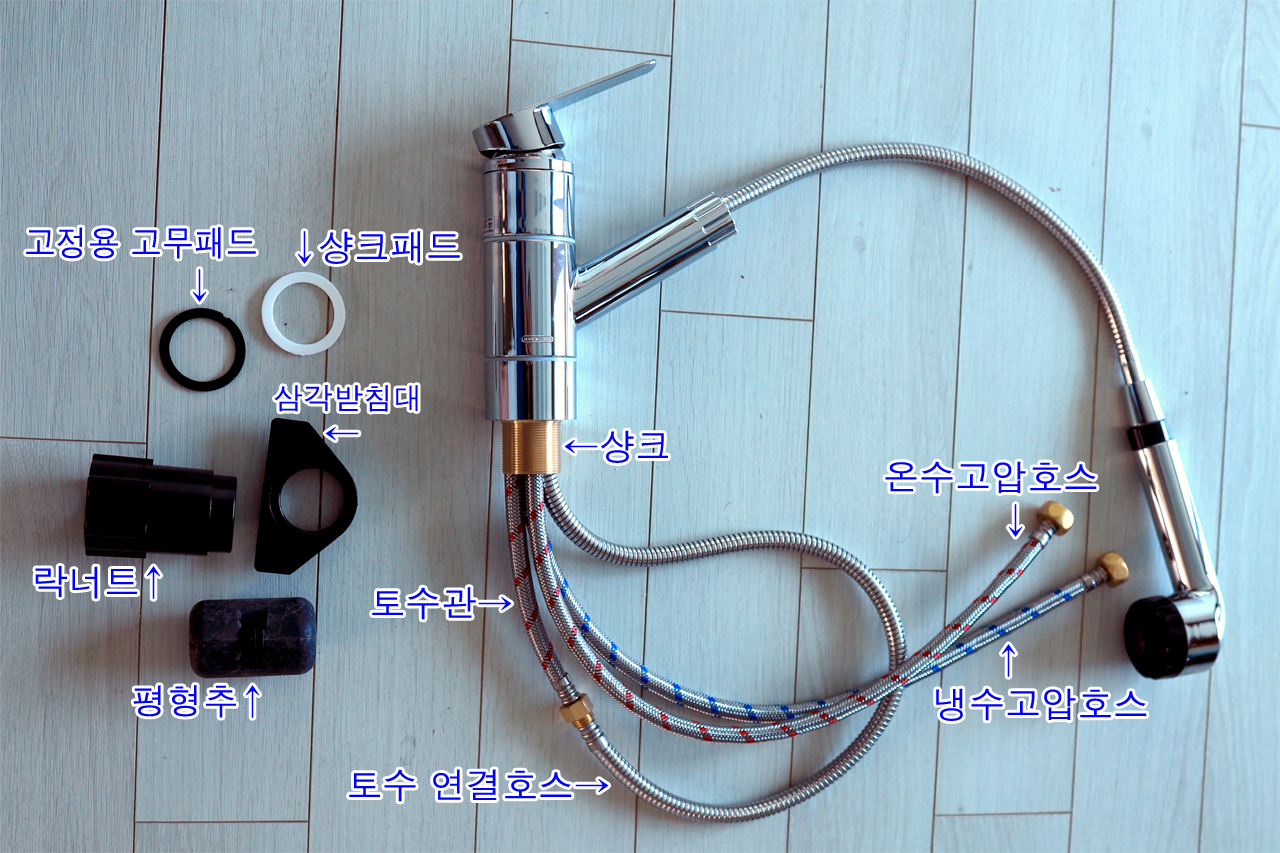 둘째, 작업 전 유투브에서 [주방 수전 교체]라고 검색하셔서 작업하는 것을 최소 1회 정도 시청 후 작업하시길 바랍니다.