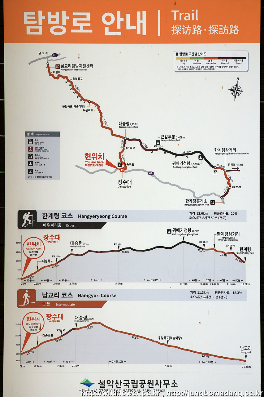 12Km, 7시간 17분 산행을 했습니다. 버스 시간이 간당 간당했네요. 만일 원통-01, 원통-02 버스를 놓치면 속초에서 오는 시외버스를 타거나 먹잇감을 노리듯 정차중인 택시를 이용하는 방법 있겠습니다.
