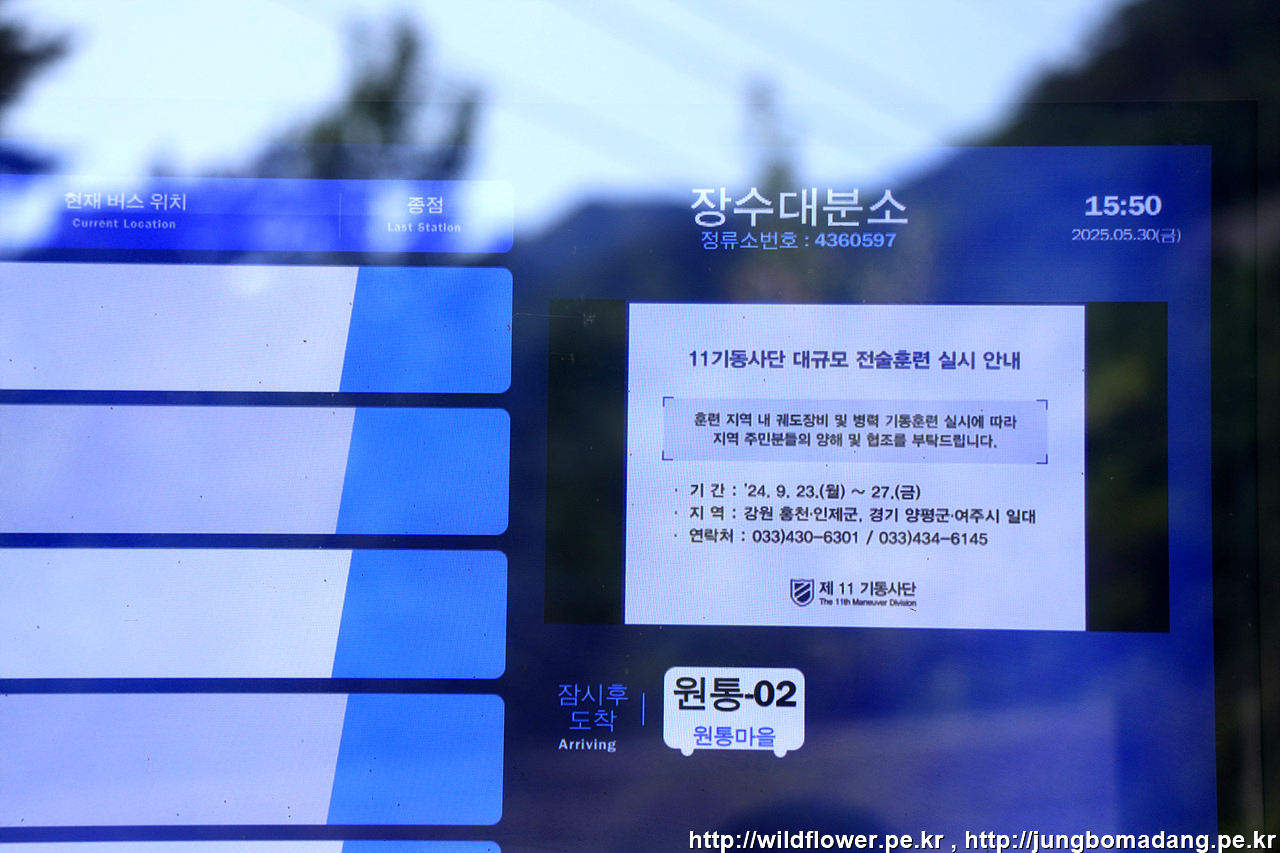 원통-02 버스를 타고 23분 소요되어 원통버스터미널에 도착합니다.