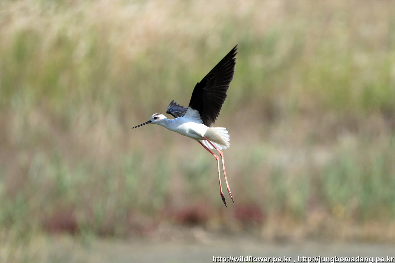 장다리물떼새 - 암컷. 비상. 크롭 사진입니다.