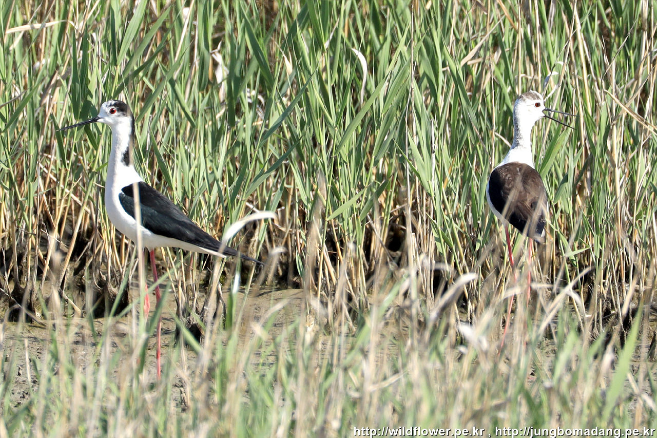 장다리물떼새 - 수컷, 암컷. 크롭 사진입니다.