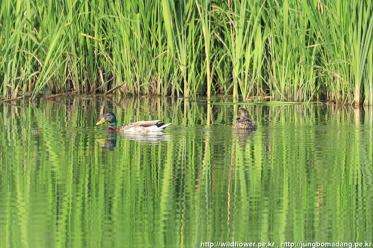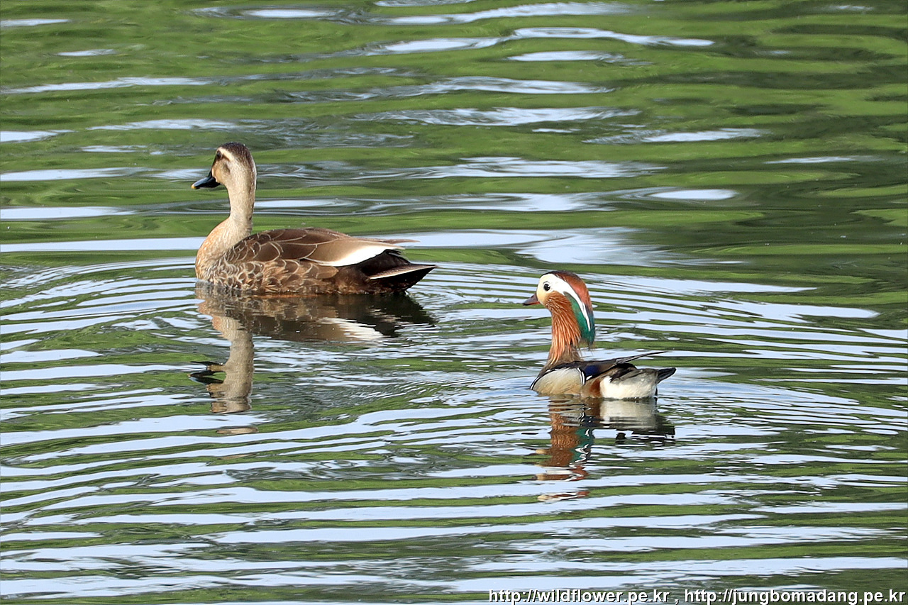 청둥오리 - 수컷, 암컷. 크롭 사진입니다.