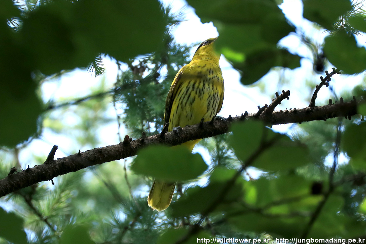 꾀꼬리 - 유조(어린새). 크롭 사진입니다.