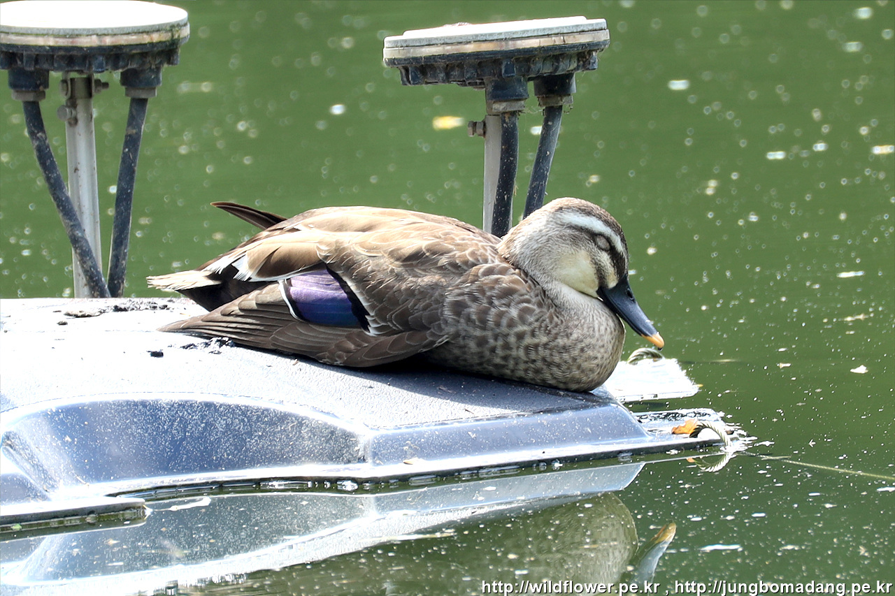 흰뺨검둥오리 - 크롭 사진입니다. 주무시는 중...