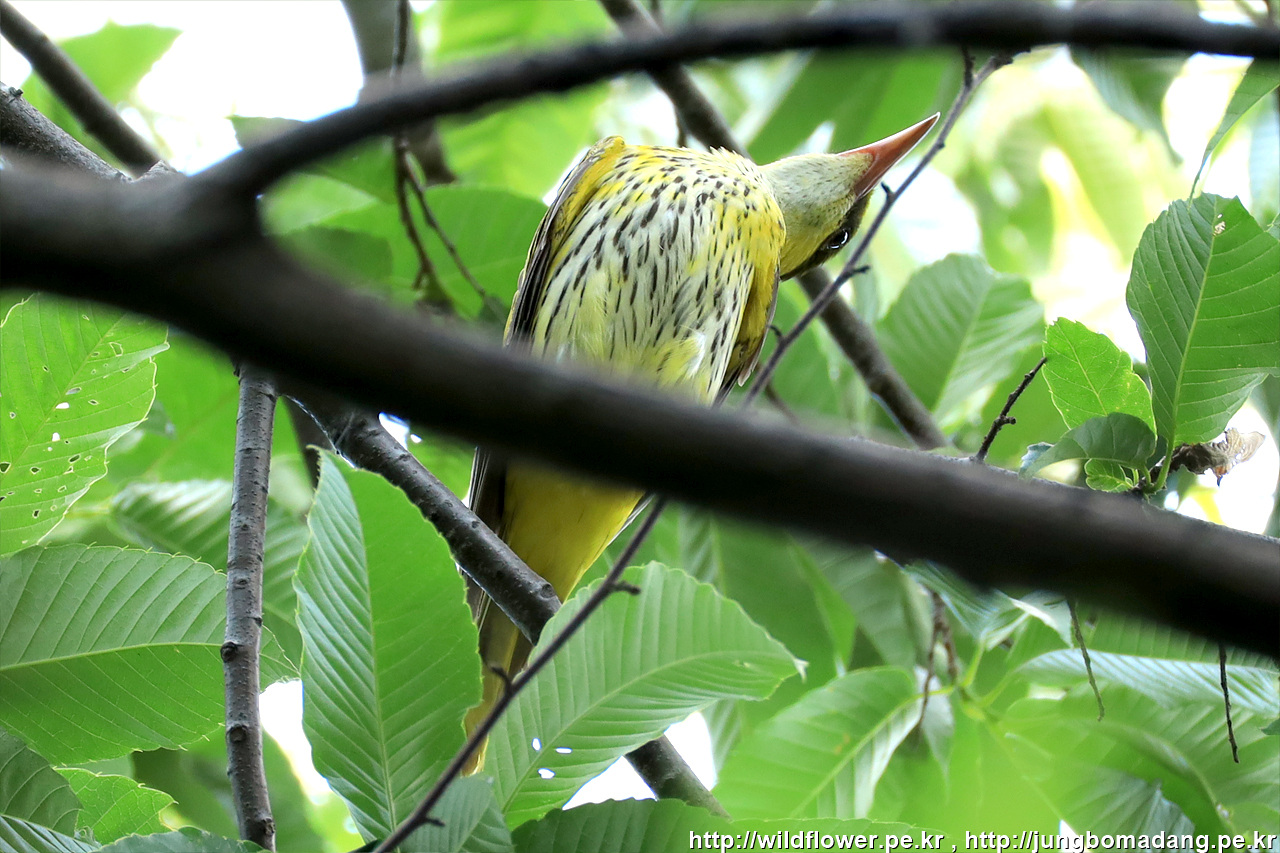 꾀꼬리 - 유조(어린새). 크롭 사진입니다.
