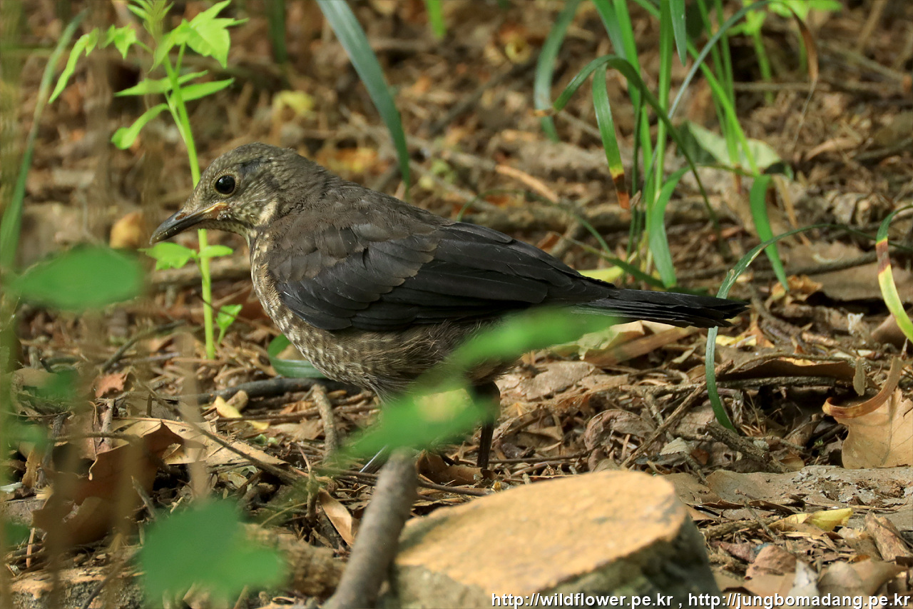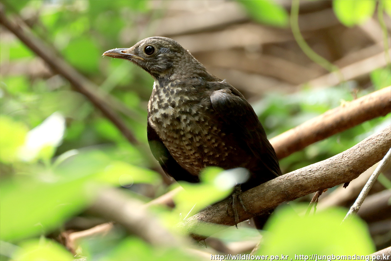 대륙검은지빠귀 - 유조(어린새). 크롭 사진입니다.