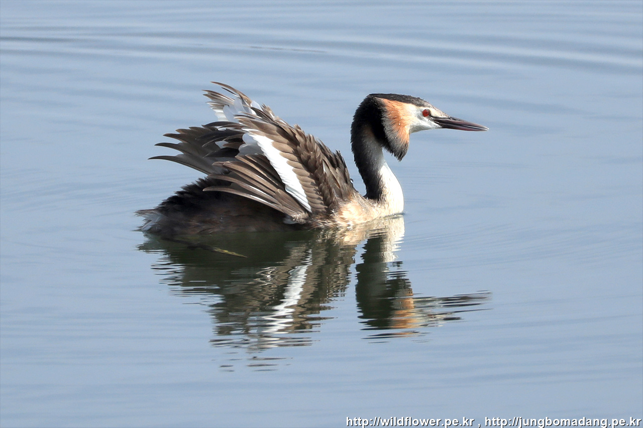 뿔논병아리 - 번식깃. 크롭 사진입니다.