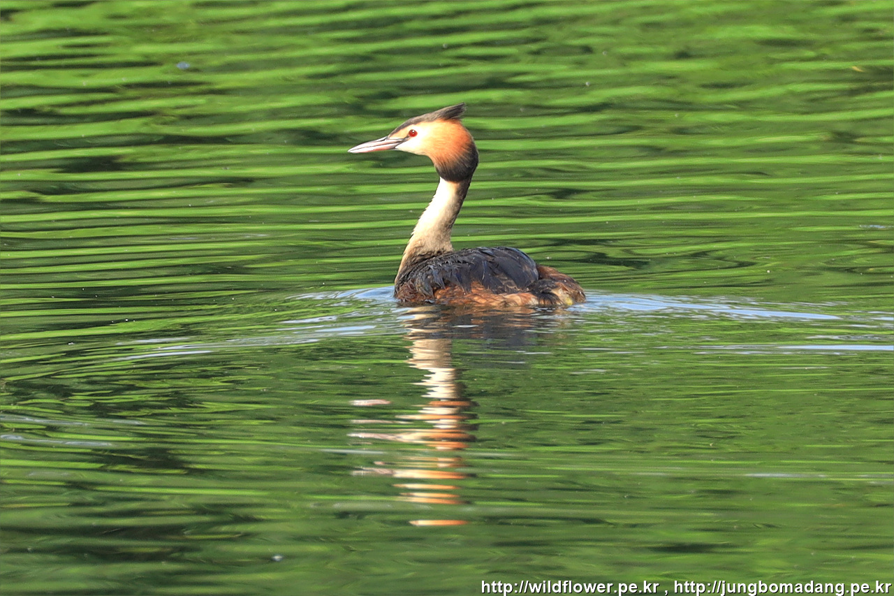뿔논병아리 - 번식깃. 크롭 사진입니다.