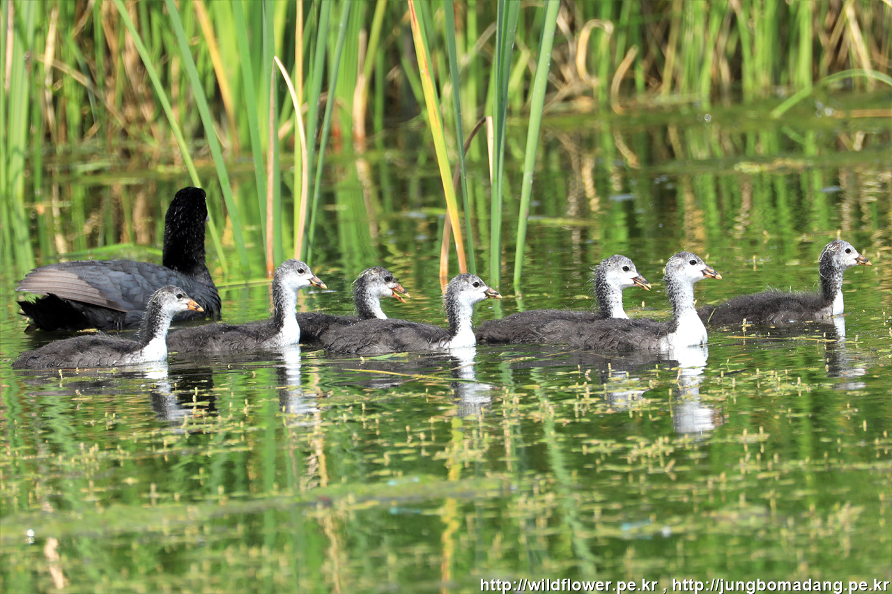 물닭의 유조들이 찰방 찰방 헤엄치는 모습이 귀여웠네요.
